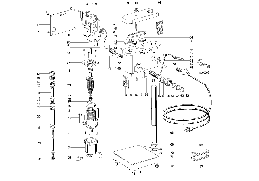 Je to pěkná malá vrtačka na stůl. S dobrým sklíčidlem ani malé vrtáky na PCB nehází. Co je trochu divné je umístění vypínače na boku, ale dá se na to zvyknout. Měnil jsem u ní přívodní šňůru, stará gumová se už rozpadla. A dostala nový dlouhý "sloup", broušenou vodící tyč d35x700. Takže teď není problém s pracovní výškou i u vysokých předmětů.