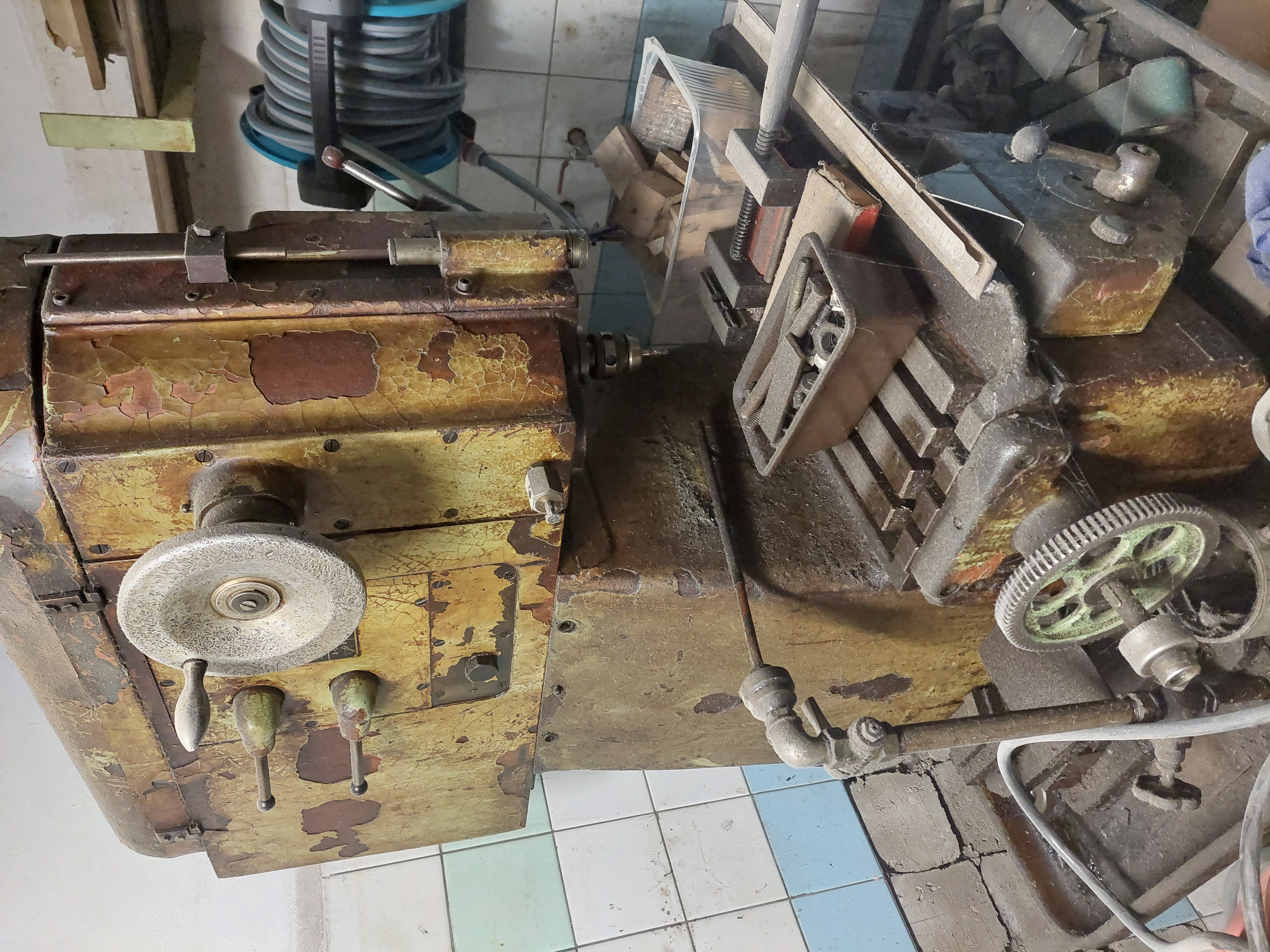 předválečný soustruh Volman, protahovačka HMS 850, Gude MIG 192/6K, frézka F1J2