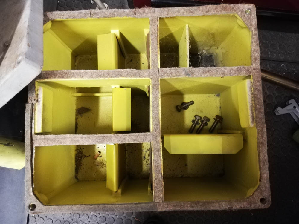 dostal som nepoužité odsávanie ktoré sa dodávalo k brúske NUA-25. Vnútri je systém priečok a medzi nimi sú buď plechové vyberateľné priehradky, alebo kovové sitká. Na konci tohoto labyrintu je diera von. Ako to prosím vás funguje? Netreba do toho nacpať nejaký filtračný materiál?