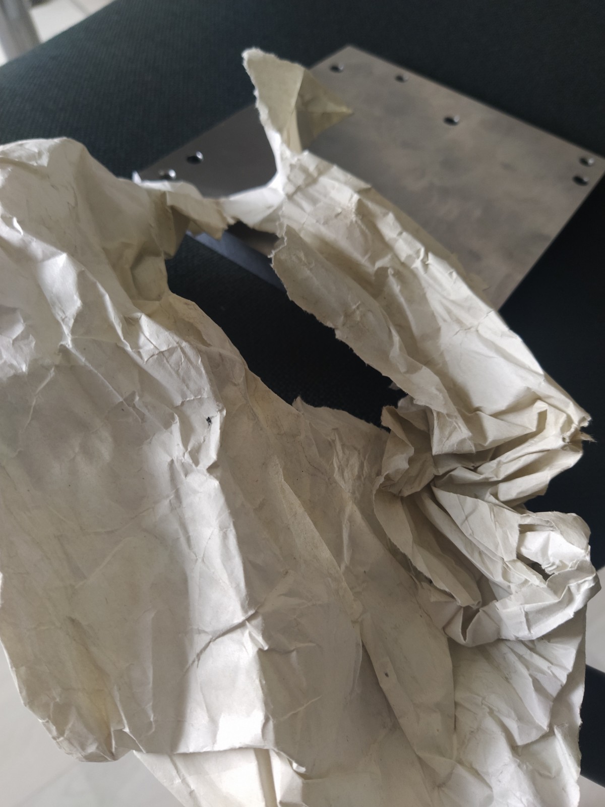 PPL řešit nebudu, pošlou mě do háje, za prvý jsem otevřel ?klopovou krabici špatně? Ať už to znamená cokoliv a ať už jsem tím jakkoliv mohl poškodit 2 kilovou desku. Asi tím skalpelem jsem uřízl oba rohy. Ten "hedvábný papír" v kterém to bylo zabalené i tu bublinkovou fólii jsem vyhodil.