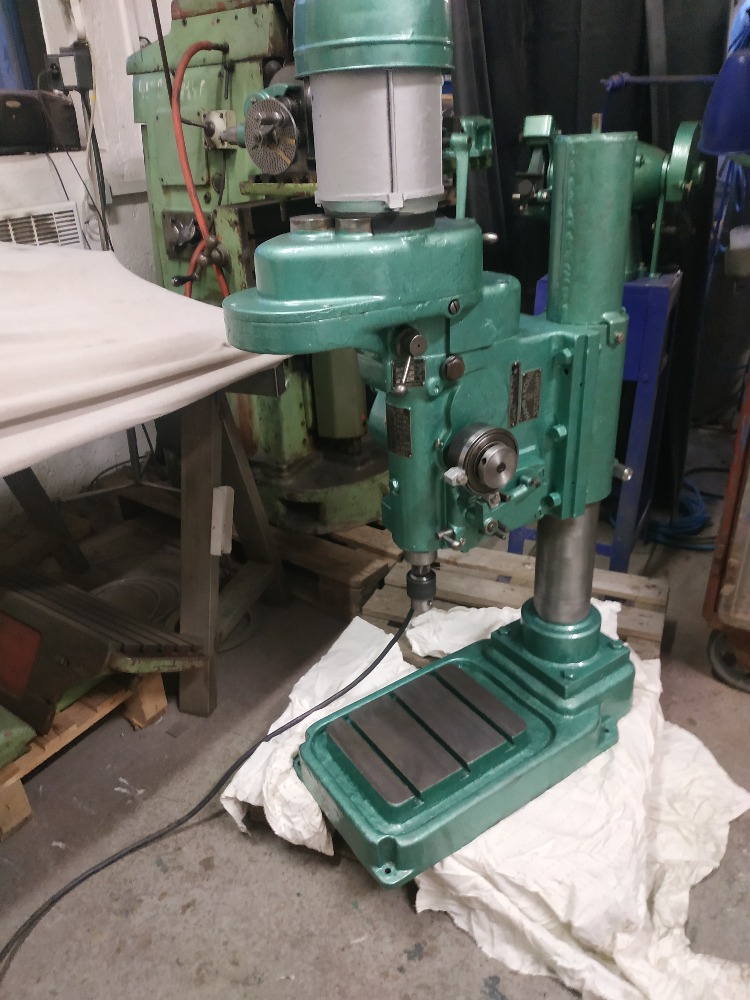 Stroj Fa3u takže bez výsuvný pinole. Už jen navrtávák a vrtání dalo nějaký čas, ojehlení ze vstupní strany taky no a jak sem závitoval? Nejrychlejší způsob byl do akučky m8 strojní namazat každou druhou díru a to byl fofr nutno přiznat že z držením elektropřístrojů na kolmo nám už nějaký pátek vytrénovaný.