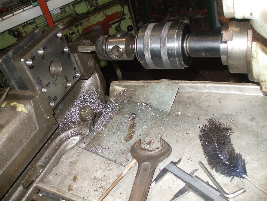 Stroj Fa3u takže bez výsuvný pinole. Už jen navrtávák a vrtání dalo nějaký čas, ojehlení ze vstupní strany taky no a jak sem závitoval? Nejrychlejší způsob byl do akučky m8 strojní namazat každou druhou díru a to byl fofr nutno přiznat že z držením elektropřístrojů na kolmo nám už nějaký pátek vytrénovaný.