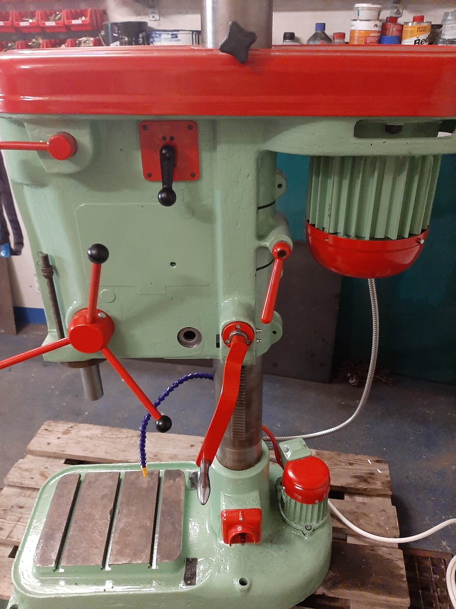 Zdravím, před pár měsíci jsem zakoupil vrtačku V20 a pustil se do její repase. Vrtačka byla kompletně rozebrána, vše vyčištěno, nové ložiska, bloky opískovány, nová elektro výzbroj, nástřik dvojsložkový polyuretan a prášková barva. Chtěl bych moc poděkovat místnímu členovi s Nickem "Krokus" kterého jsem oslovil při rozebírání stroje a na dálku mi velmi ochotně radil, jak stroj správně rozebrat bez zničení :-). Nyní řeším poslední problém a to olejoznak. Bohužel tam nemám ten šroubovací, ale uchycený na 3 šroubky a ten je nesehnatelný. Nechal jsem si vypálit na laseru pěkně sklíčko z plexi, a teď řeším čím ho tam nalepit, aby to drželo a zároveň odolalo oleji. Má někdo zkušenost s podobným problémem.