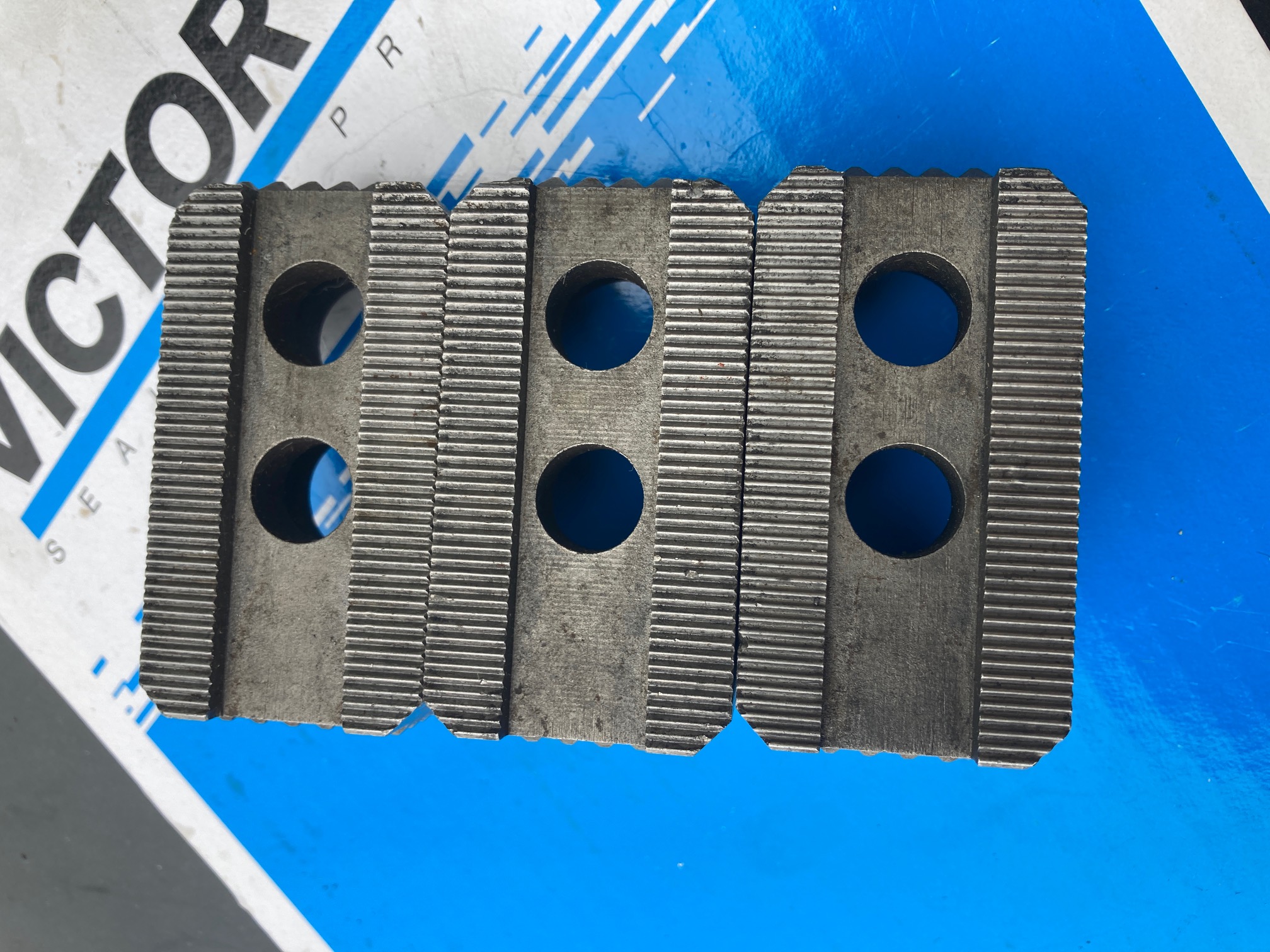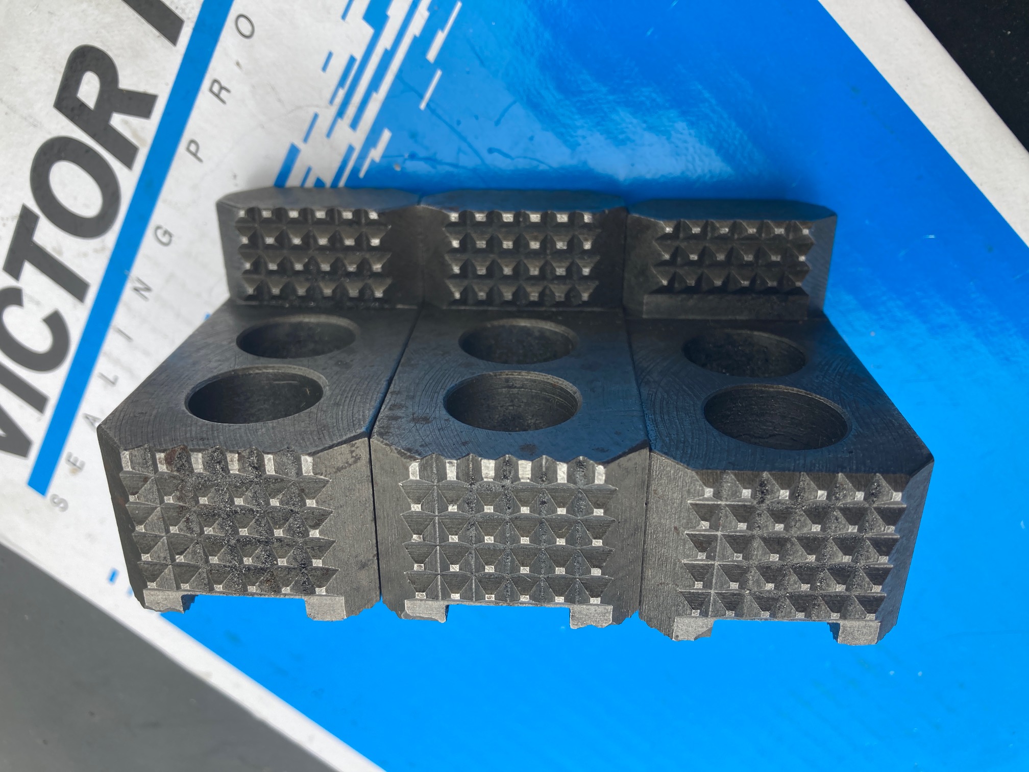 Nabízím sadu tvrdých čelistí s drážkováním 1/16". Rozměry a stav jsou patrné z fotek. Cena za sadu tří kusů 4 tis. K prodeji mám dvě sady.