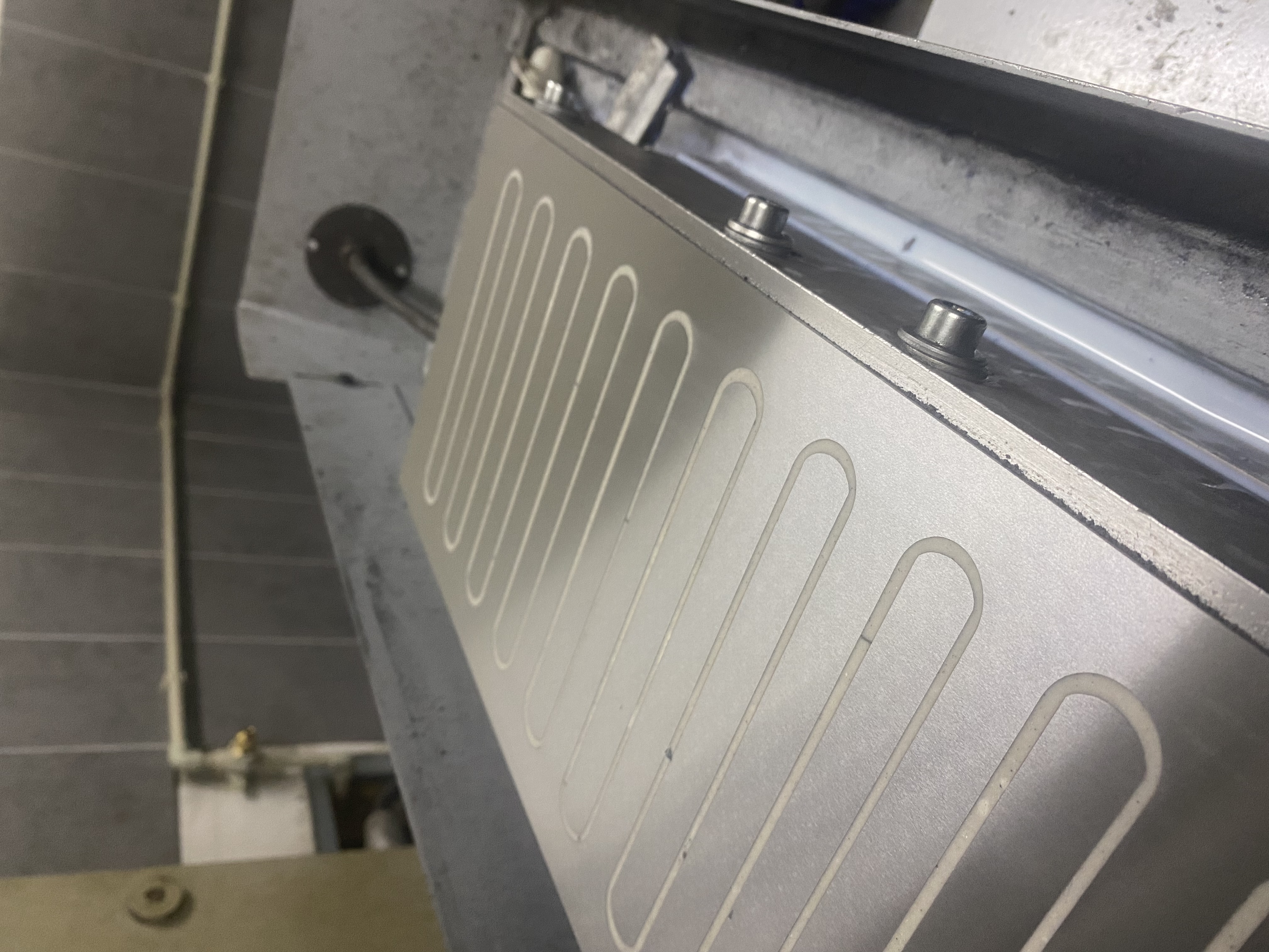 Ahoj. Pred 14 dny orovnany magnet presne podle prirucky brouseni, byl rovny kontroloval sem to. Vcera sem nemohl dohnat 2 stovky na obrobku 100x 50 tak sem magnet nafixkoval......tohle je po uberu 2 stovek, lavor......ty cary jsou chladici kapalina.....nemuzu to utrit protoze by slezla fixa......co delam spatne. Brousil sem kazdy den