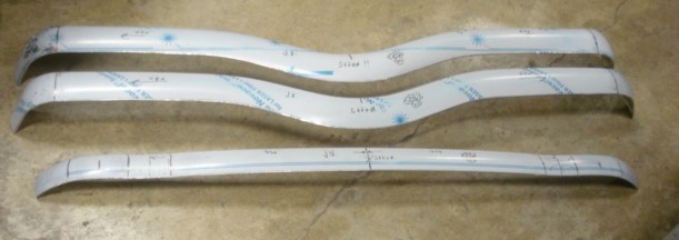 Níže Aero a Jawa 3mm a ty malé jsou BMW 327 2mm. Mají zužující profil a velmi krátký ohyb na okraji. Ty mě trochu potrápily, ale opět mojí metodou bez větší přípravy a předvídatelný výsledek. Díl na T603 mezi kapotu a přední masku jsem dělal z jednoho kusu podle originálního nd