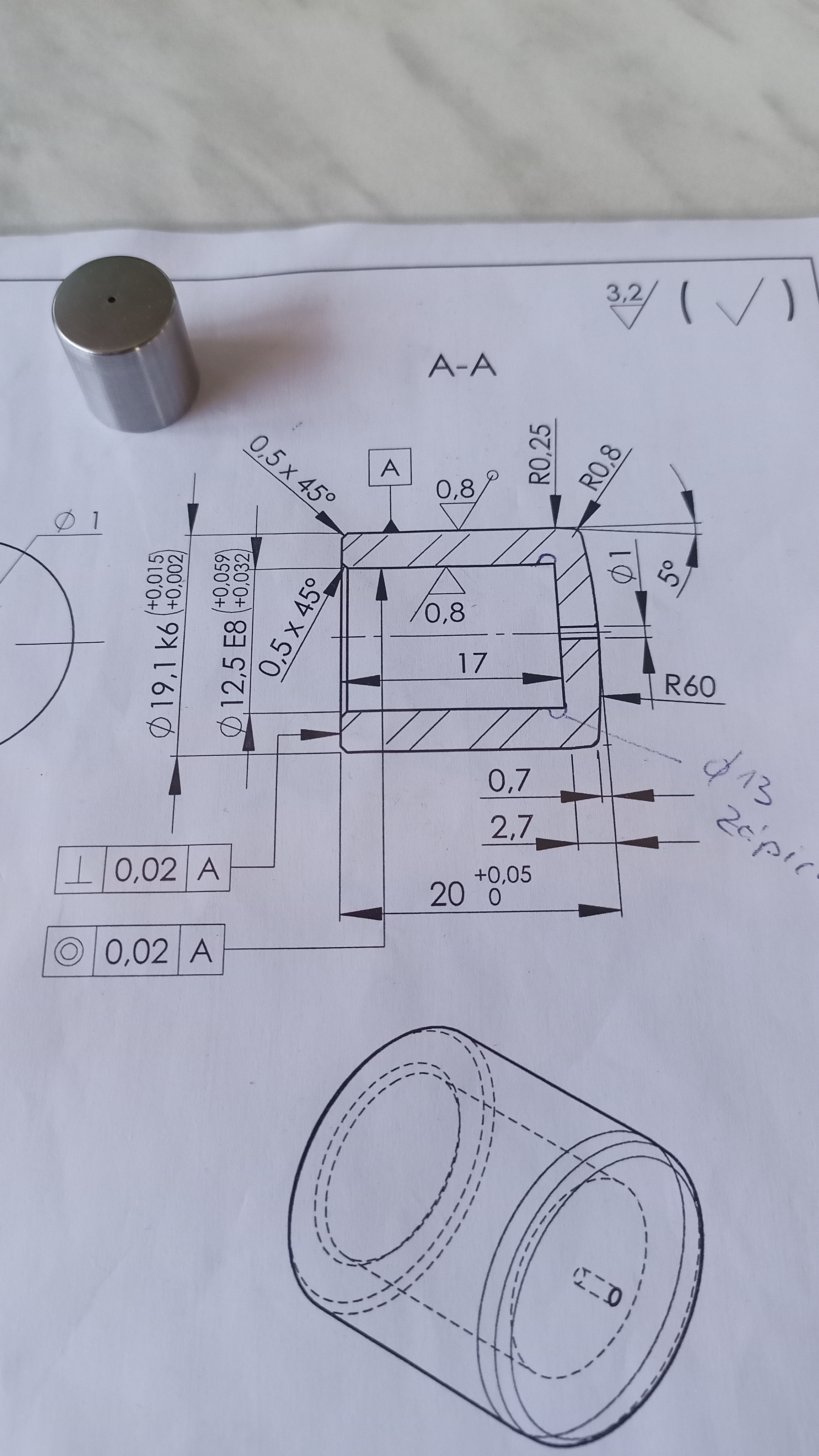 Dneska přišla tahle kalibrační tryska. Výroba Jerguš Baláž. Povrchy krásné, rozměry na středu tolerančního pole :-)