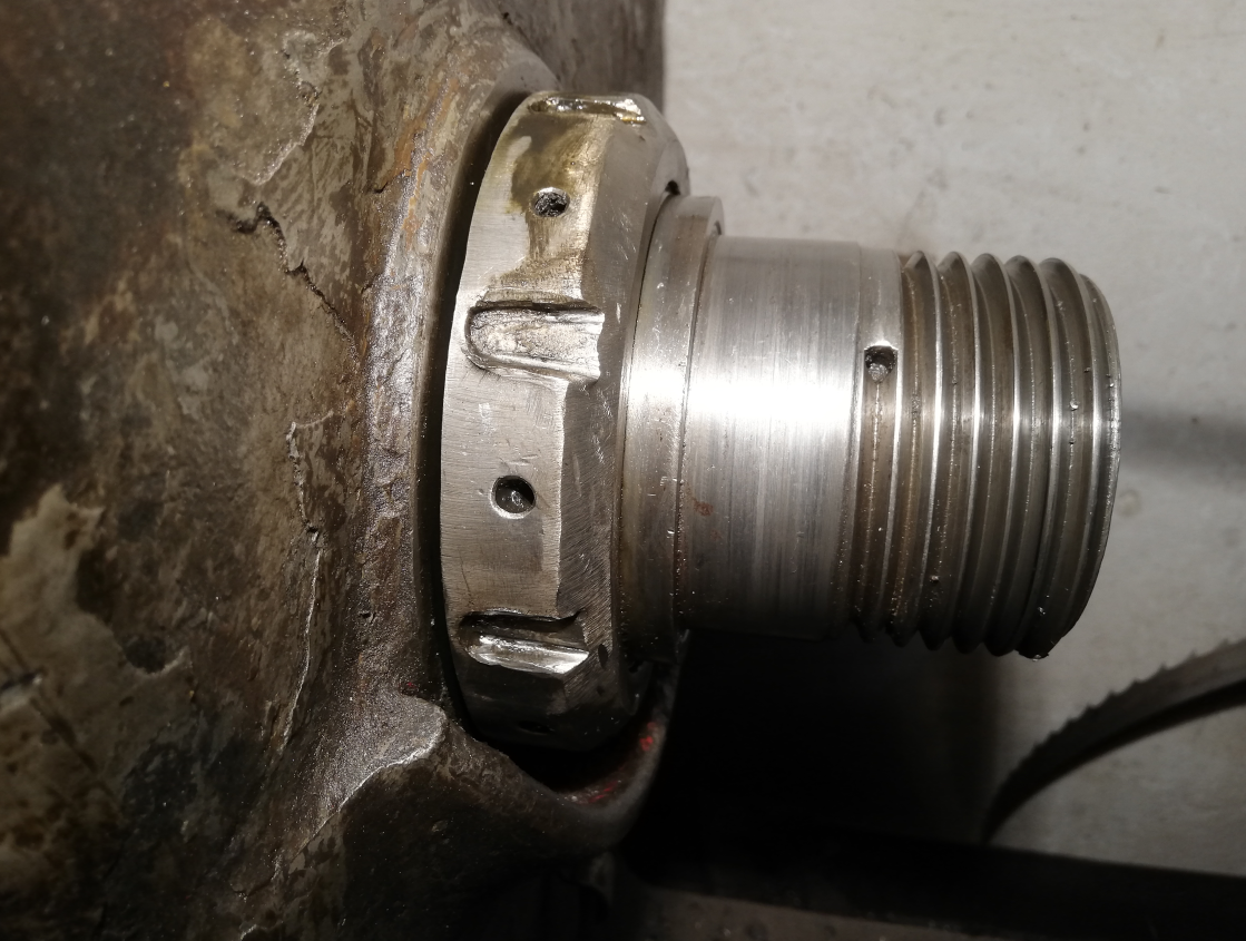 ona sa nedá vykrútiť uplne pretože tento výstupok na vretene tomu bráni a ako som ju povoľoval tak vdaka tomu sa pohlo vreteno smerom k suportu