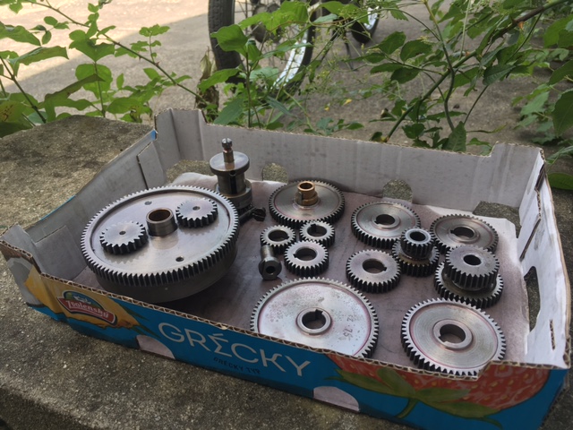 Prikladam aj fotky stavu pred a potom stavu po. Ozubene kolecka som umyl v benzine s vyraznym mnozstvoj oleja a potom napenetroval reznym olejom. Zatial, kym to zlozim. ********************