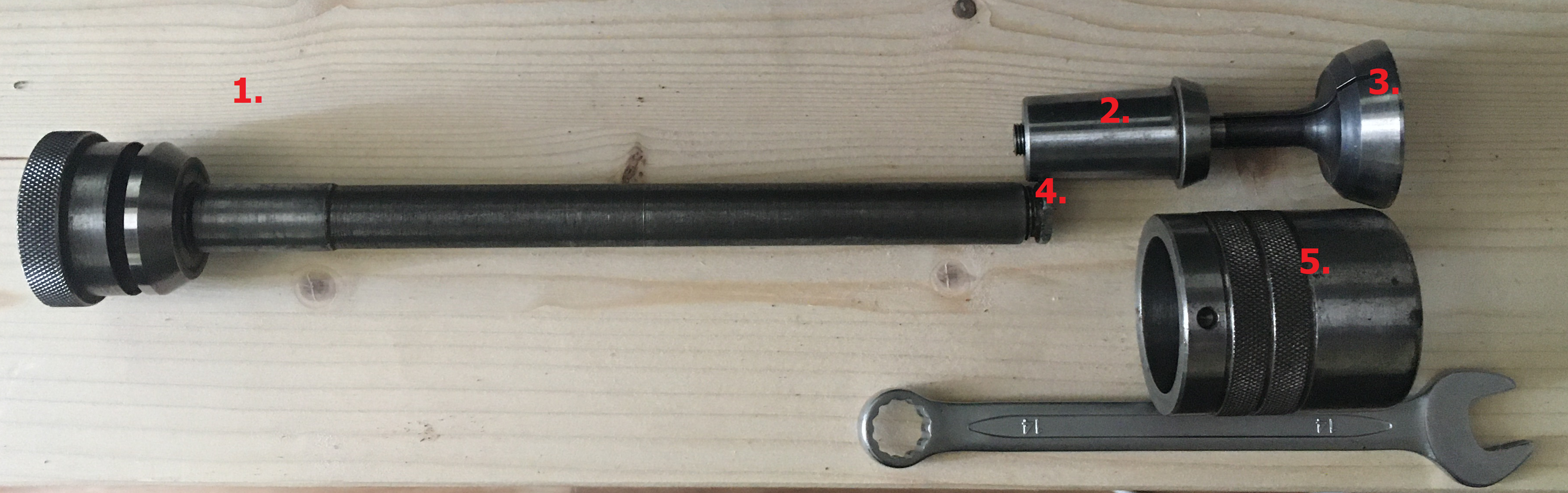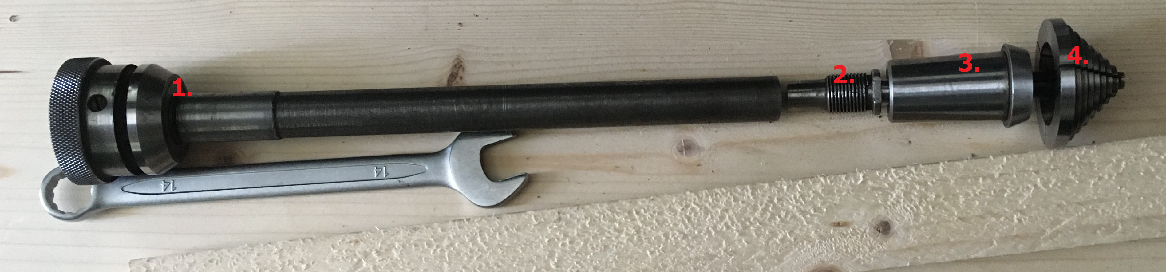 Další obrázek - to samé jako u obrázku první stromečkové kleštiny ale č.5 se demontuje a do vřetena se narazí č.3 z třetího obrázku. Jinak platí to samé co u prvního.