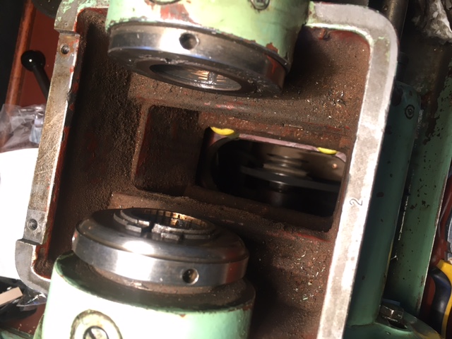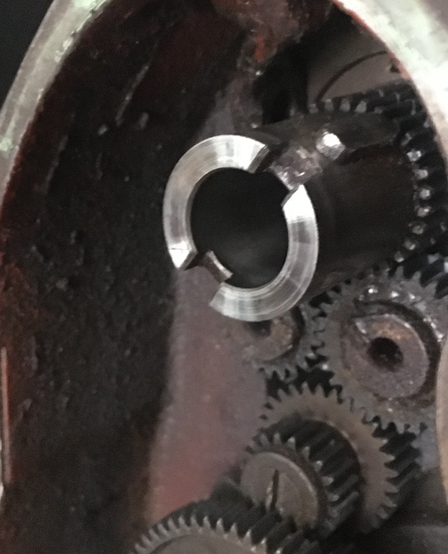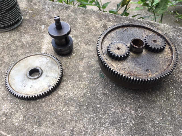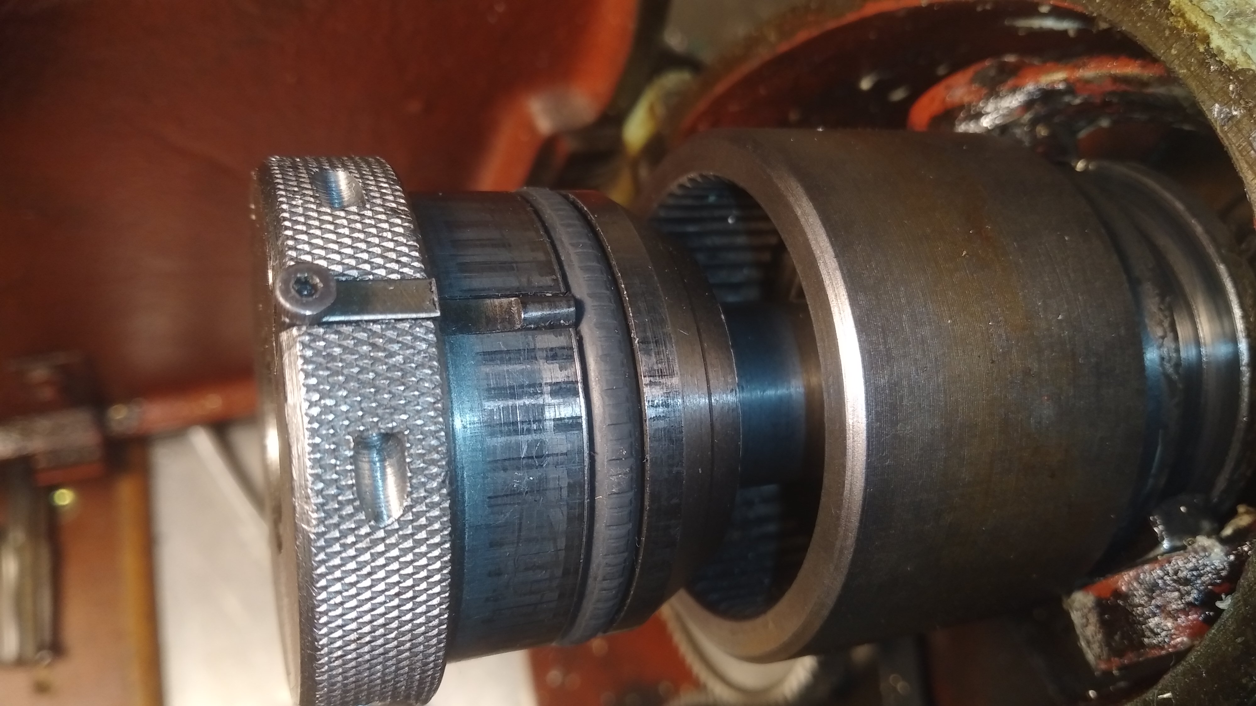 Pre pre pripomenutie, element c. 1 sa opiera rovno o koniec vretena, kde su tie drazky, co sa mi velmi nepaci (obrazok pod tym. Nezhrozit sa nad stavom tych ozubenych koleciek. Vsetko vycistim a premazem!). Nie je tam problem s upinaciou dlzkou, ze to potrebuje nejako vypodlozit skrz chybajucu ozubenu hlavu Sanchoveho prispevku? Nezdalo sa mi to a nechcel som to utahovat nejako donemoty.
