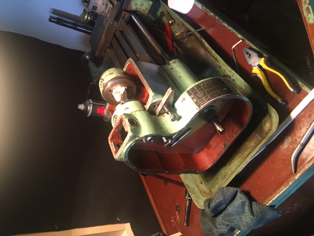 Další věc - drážka vzadu na vřeteni - domnívám se, že je originál - já ji tam mám taktéž - a jinak se dělá taková páka k podržení vřetene - která se vsune do toho vřetene aby se dala univerzálka uvolnit bez držení řemenů - mám takový dojem, že už to tu bylo vyfocené.