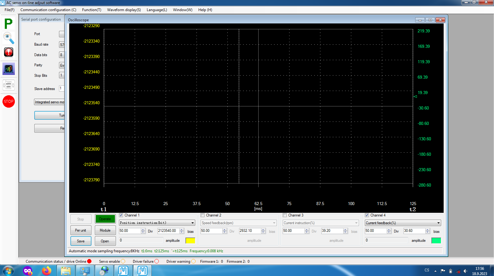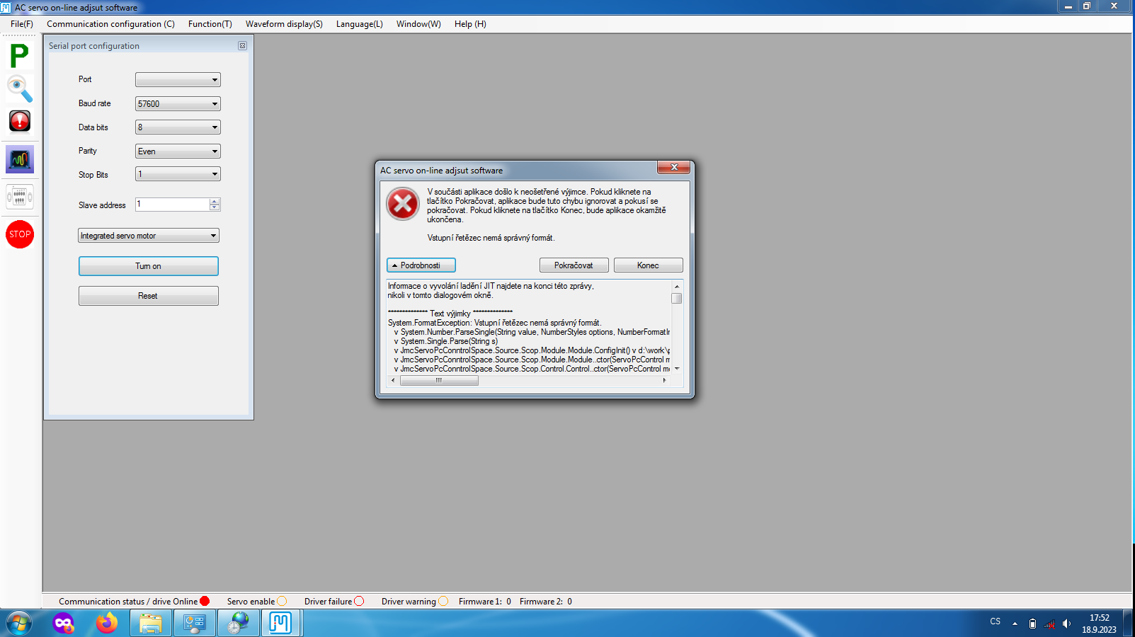 JMC Servo Software Chybová zpráva - Osciloskop
