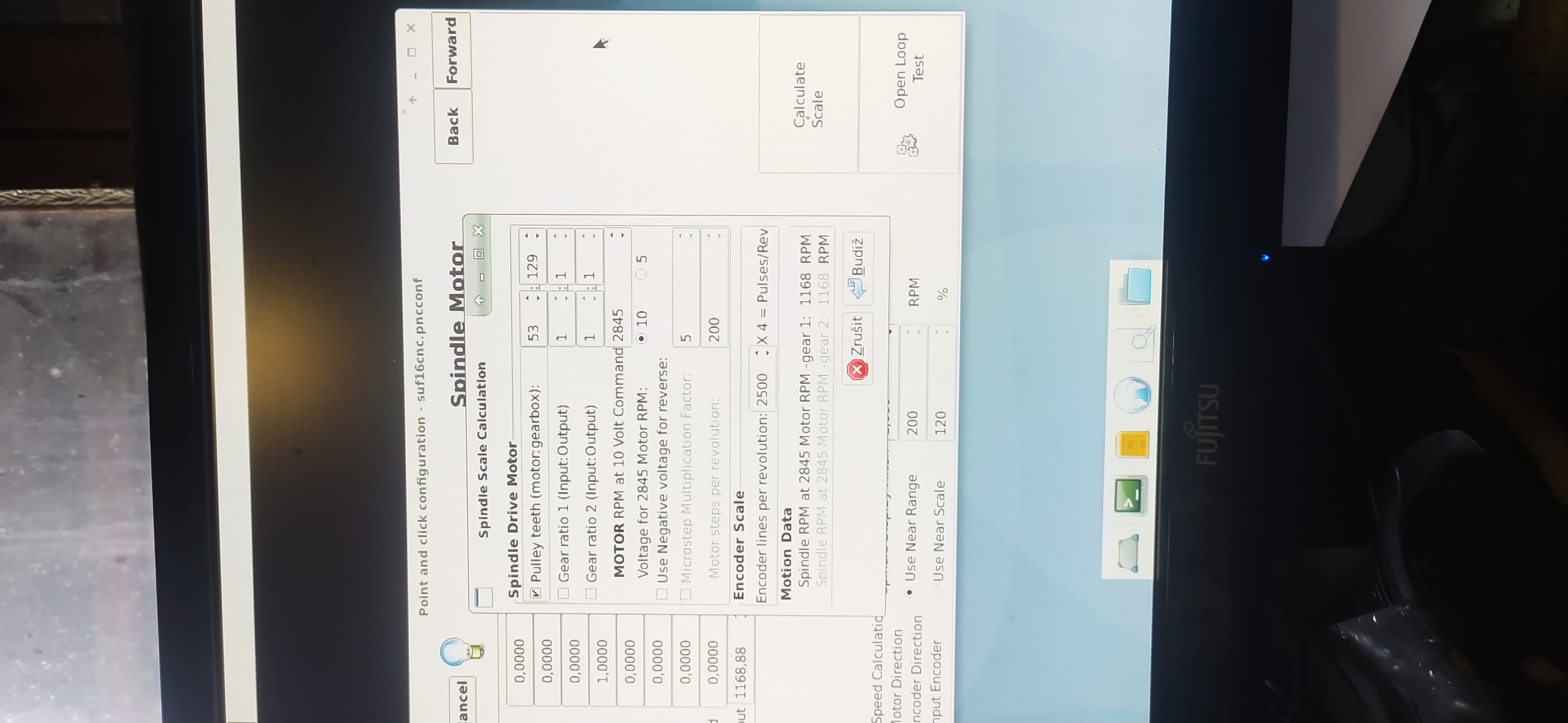 Na motoru máš 2845 rev/min a na vřeteni 1168 rev/min.