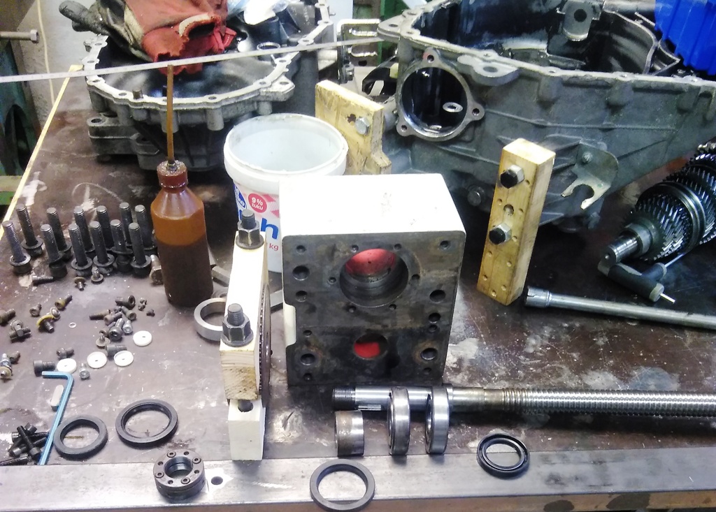 jediné co jsem na celé sestavě našel je asi moc velká díra pro ložiska v domku, díra je 62,05 (na subito), při zpětné montáži jsem je do domku zalepil Loctite, axiálně jsou vnější kroužky natvrdo staženy přírubou