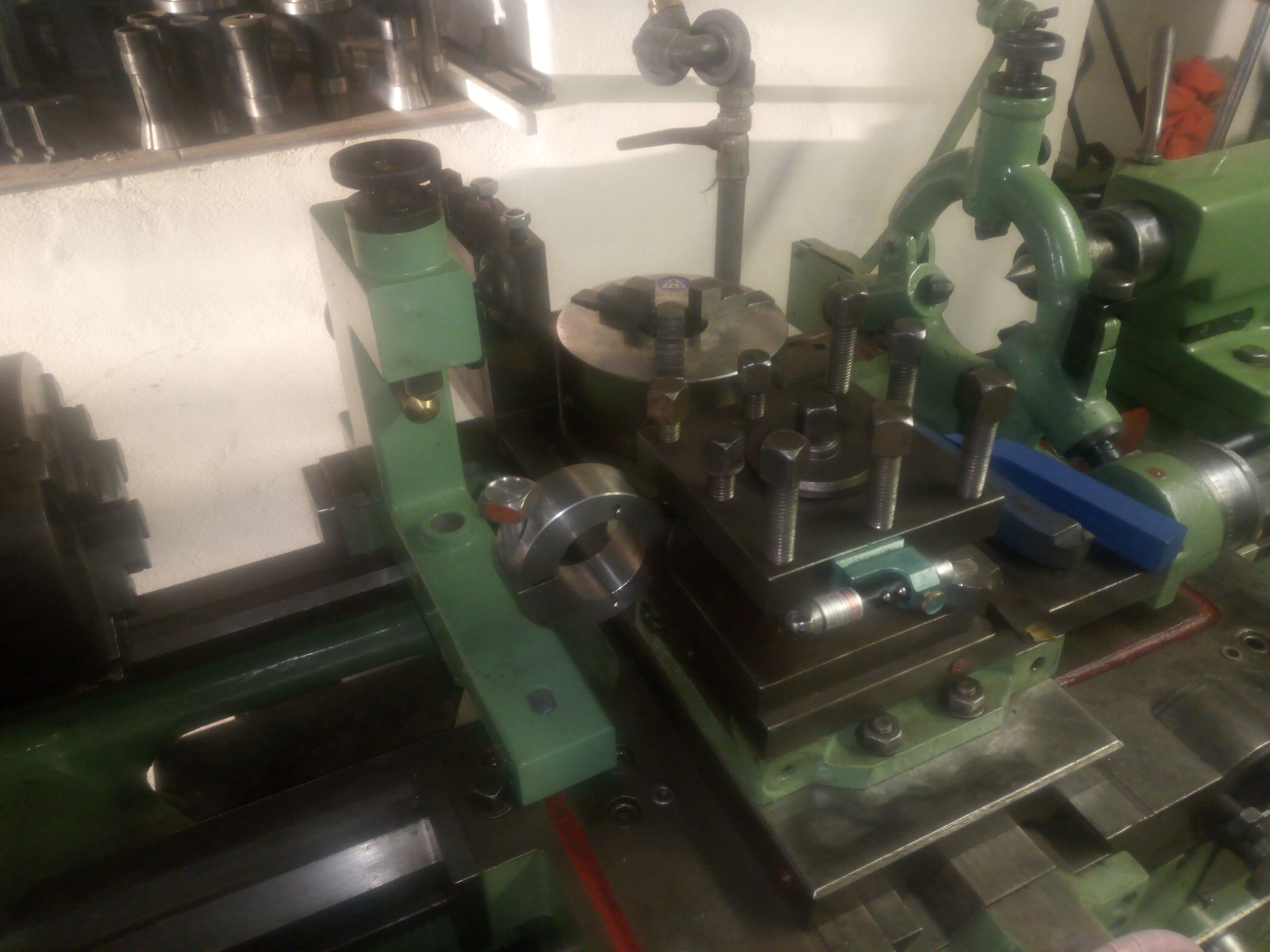 Soustruh SU-32/750, jediný nedostatek: nejde první sepnutí do hvězdy, dál jde, revers bez závad. Je někde po cestě zlomený 60 let nový kabel, do té doby makal bez závad a světe div se, alnico alnikuje jak má! Nový svazek kabelů nachystaný, ale zatím nebyl čas se do toho pustit. A ani důvod, v práci si můžu vytočit na 2 soustruhách co potřebuju. Vše potřebné vidět z fotek, kdyžtak dotazy do sz. Všude rok nové oleje a najeto na ně 0,00nic... třípakna, 4pakna, k oběma obrácené čelisti, zadní nožový držák, další nožovka, hodinky, arerační kotouče na vřeteno, atd..