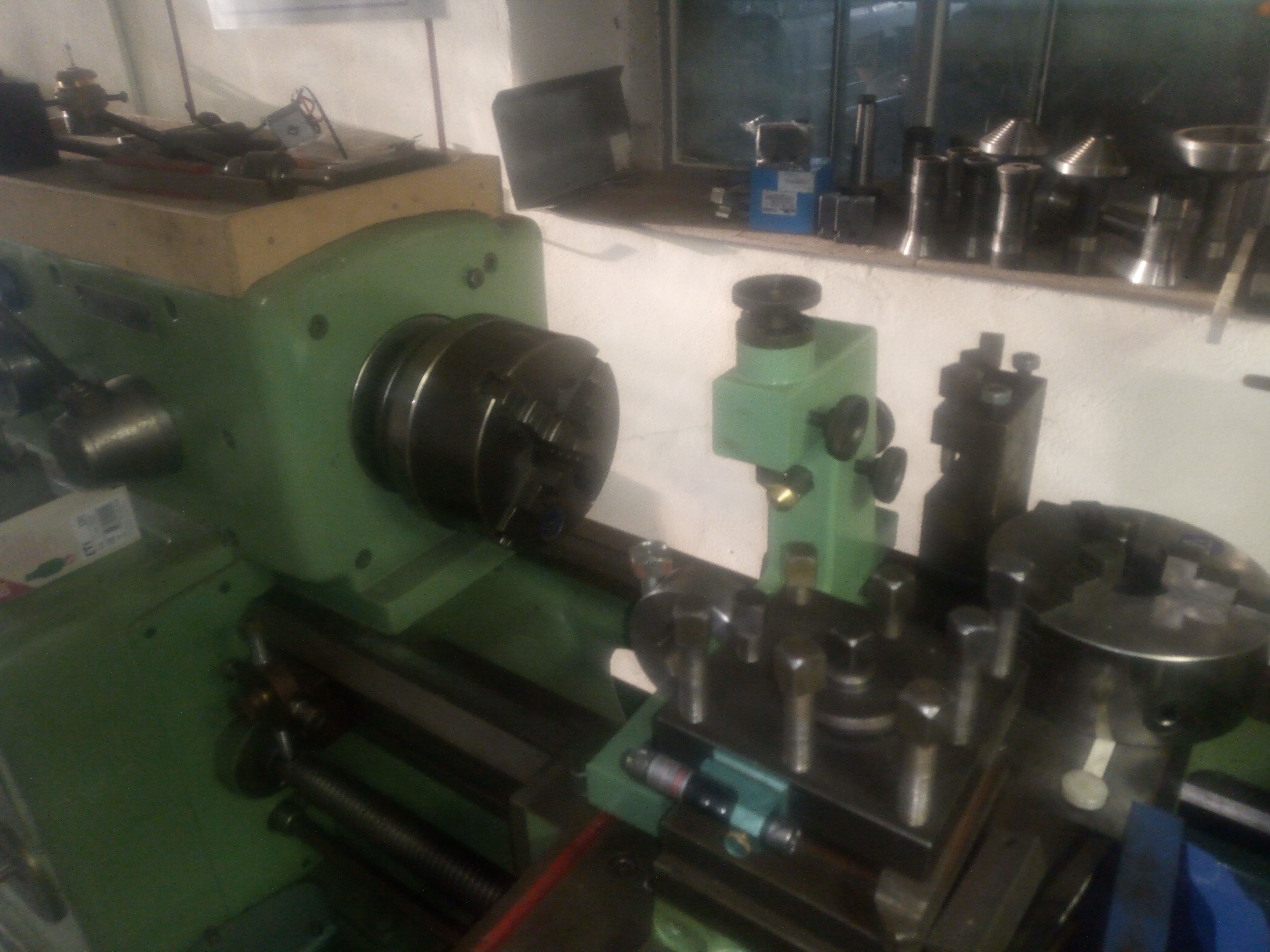 Soustruh SU-32/750, jediný nedostatek: nejde první sepnutí do hvězdy, dál jde, revers bez závad. Je někde po cestě zlomený 60 let nový kabel, do té doby makal bez závad a světe div se, alnico alnikuje jak má! Nový svazek kabelů nachystaný, ale zatím nebyl čas se do toho pustit. A ani důvod, v práci si můžu vytočit na 2 soustruhách co potřebuju. Vše potřebné vidět z fotek, kdyžtak dotazy do sz. Všude rok nové oleje a najeto na ně 0,00nic... třípakna, 4pakna, k oběma obrácené čelisti, zadní nožový držák, další nožovka, hodinky, arerační kotouče na vřeteno, atd..