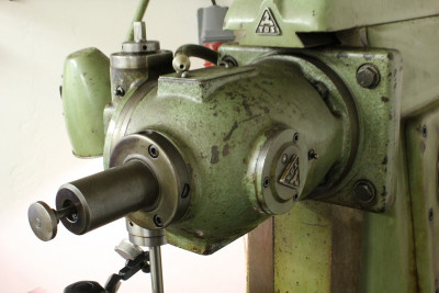 1) Normální vertikální hlava. Zespodu má buď ISO nebo morse kužel. Na frézce je přimontována přes převodovku, která umožňuje zvýšení nástroje nad stolem. Zda převodovka zvyšuje či snižuje rychlost netuším.