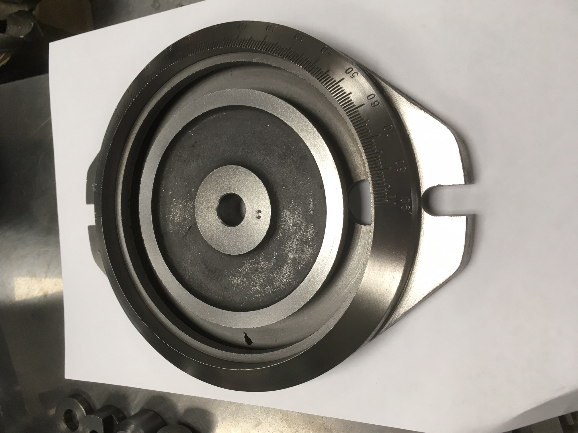 Po odrezení doporučuji ještě díl okartáčování drátěným kartáčem a litinový povrch vypadá jako právě obrobený . Pokud požadujete litinu s leskem, pak se samozřejmě broušení a leštění pastou a kotoučem nešvyhnete..
