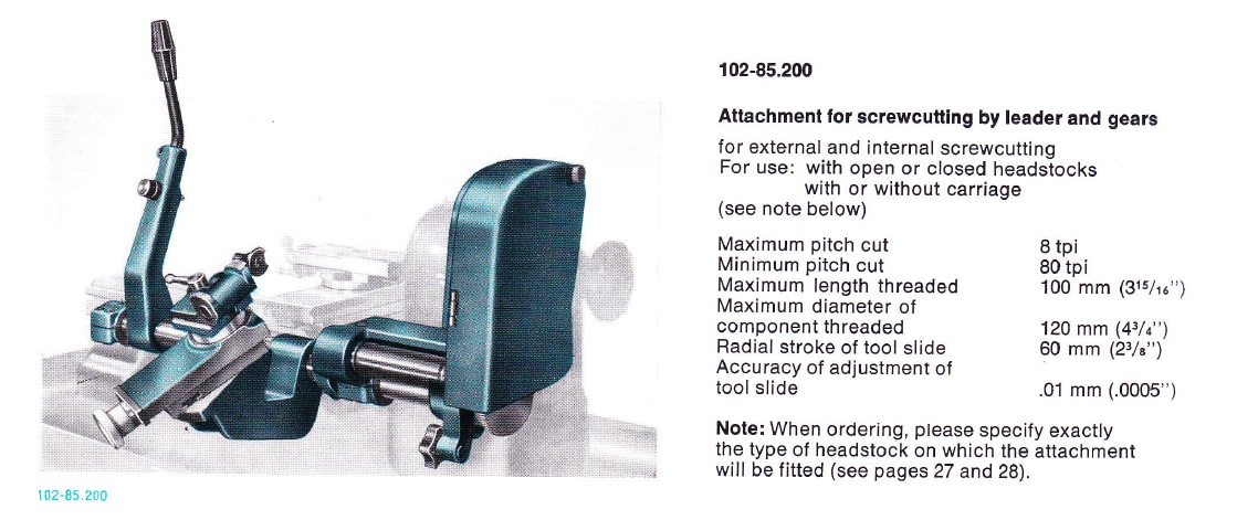 tady už někdo zapřemýšlel a zmodernizoval to, rameno je odděleně vpravo a otočný věneček se stoupáním pro víc patron navíc už má výklopný suport který se používal k stranovému posuvu pro metrický závit kde se to vyklápělo na klasických 30st. nebo na 28st. to bylo docela chytré, to jsem popravdě neznal :wink: 102-85.200 new.jpg