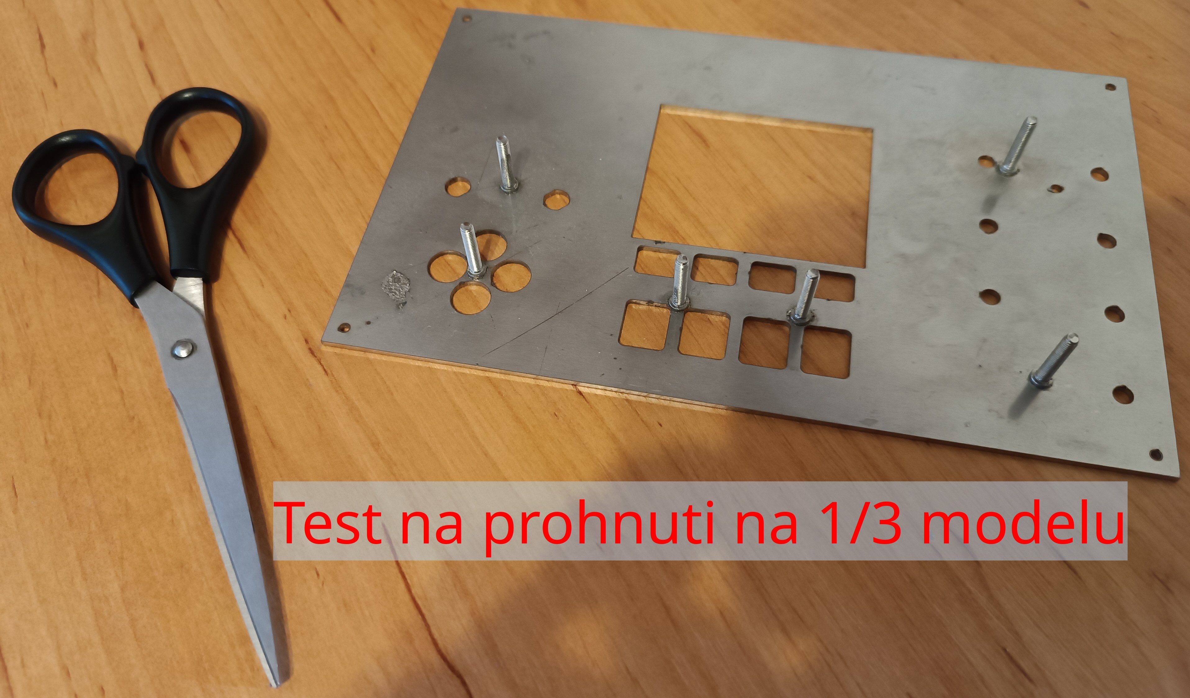 Edit: + fotky 1/3 modelu z podobneho vyrobku, na koleni kvuli testu na prohnuti plechu.