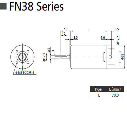 Dc precizní motory Canon FP38 se zpětnou vazbou