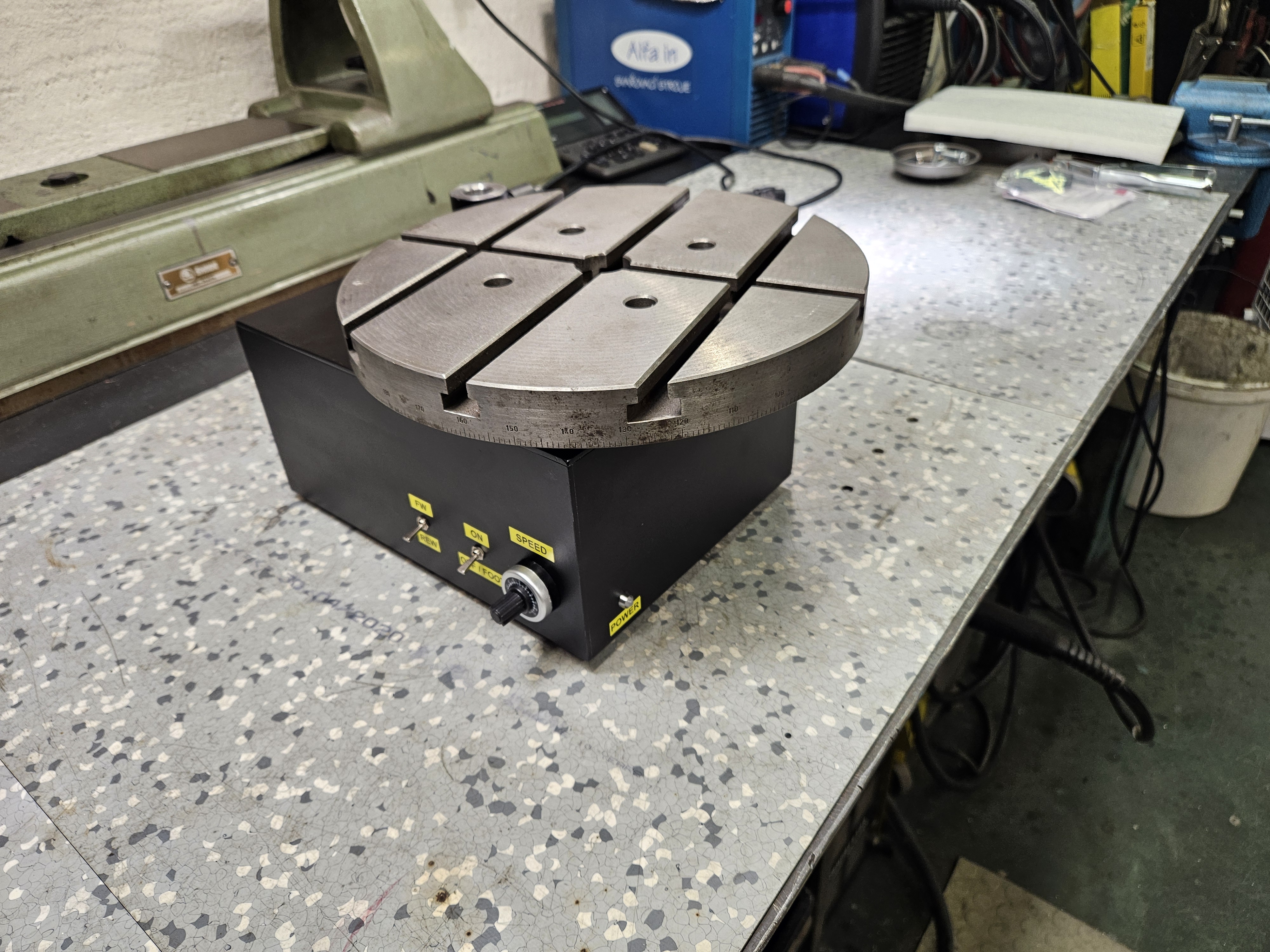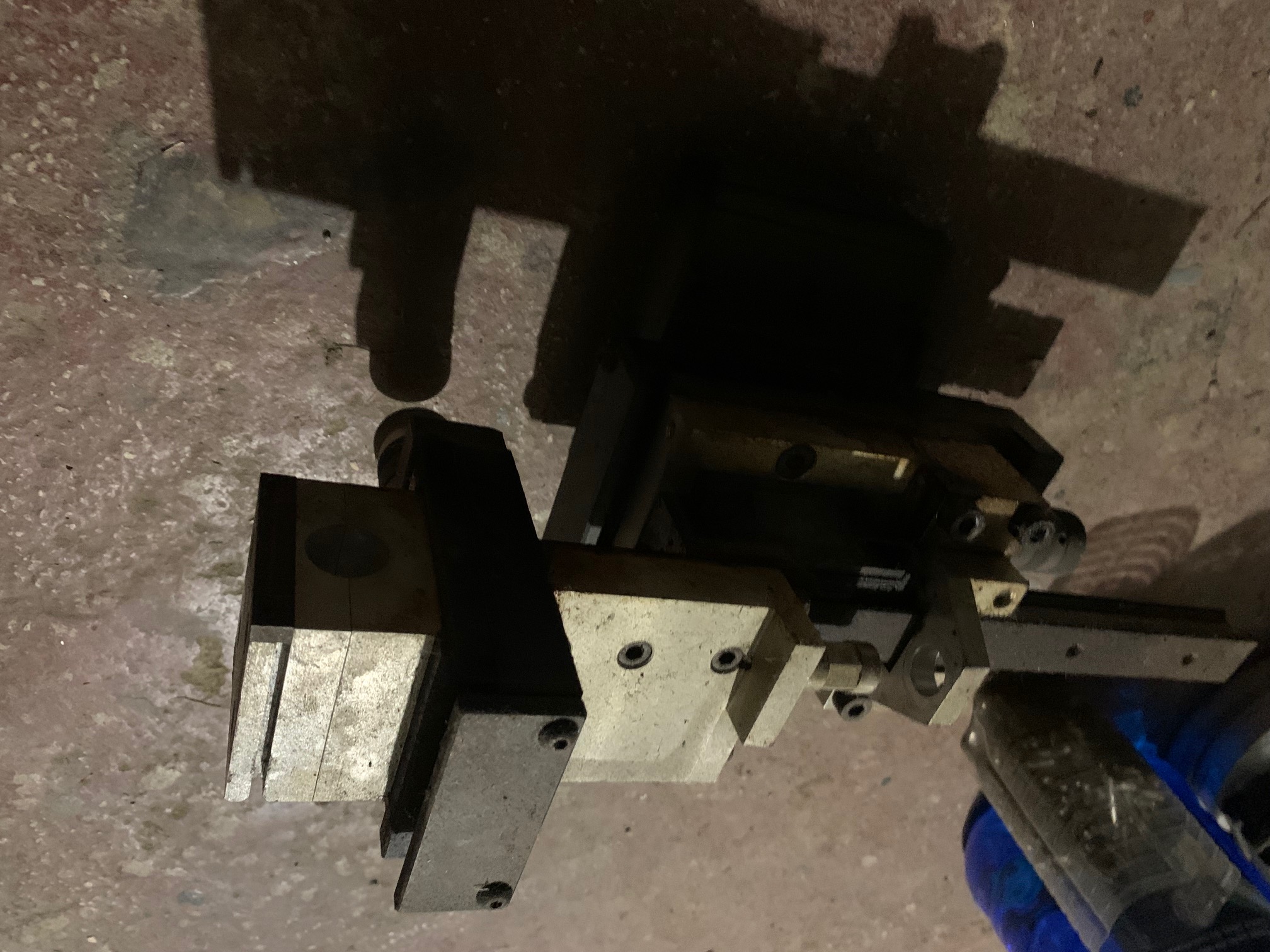 Ten rotačný stolík máš pekný, tiež sa ho strojím vyrobiť, no ešte nemám vhodný pohon. Ale mám :P (som v kovošrote utasal) trojosé nastavovanie horáku, naviac bol navrchu aj malý pneu valec so snímačom polohy, no ten bol poškodený tým hnusným FUCHSom čo všetko pomačká. :(