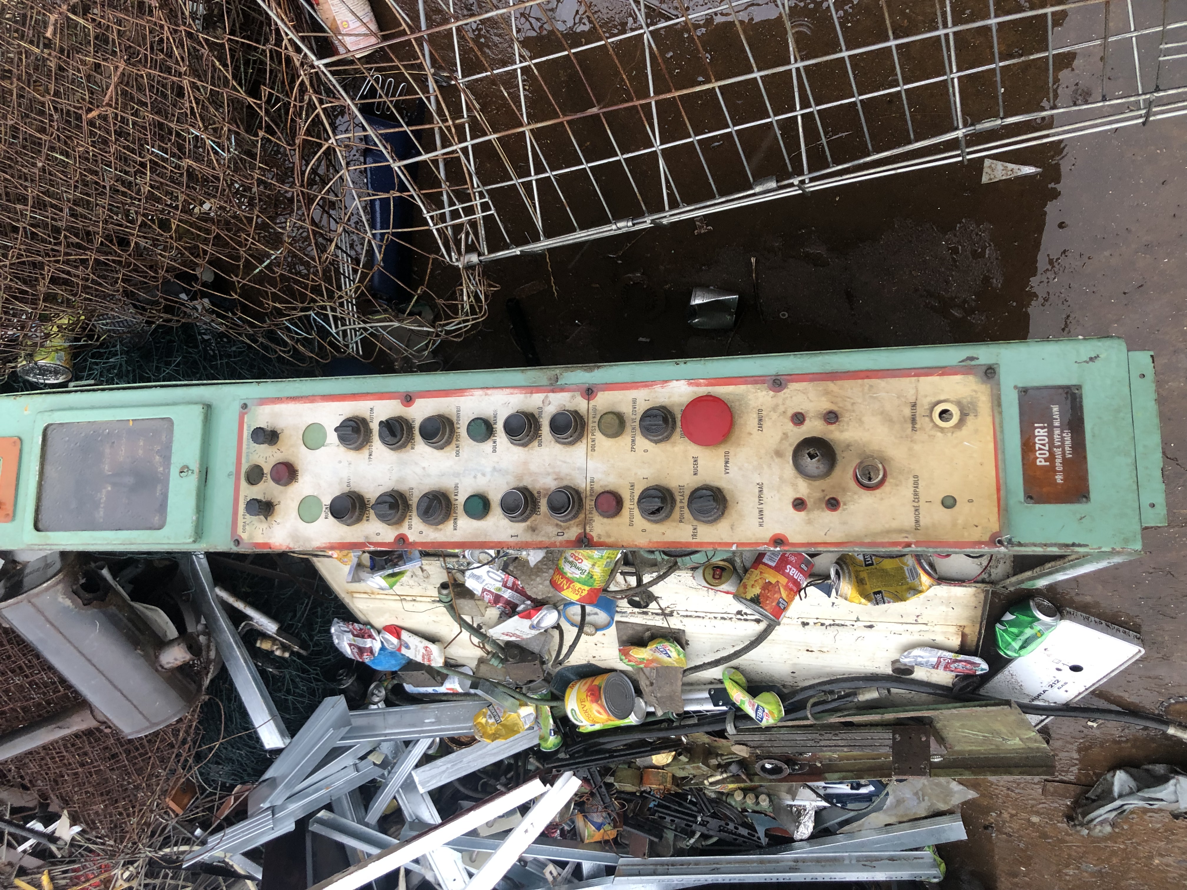 Pro železniční sběratele, přestavník výhybky se závažím a neosvětlovaným výměnovým návěstidlem (šipka), druhý leží na opačném konci dvora.