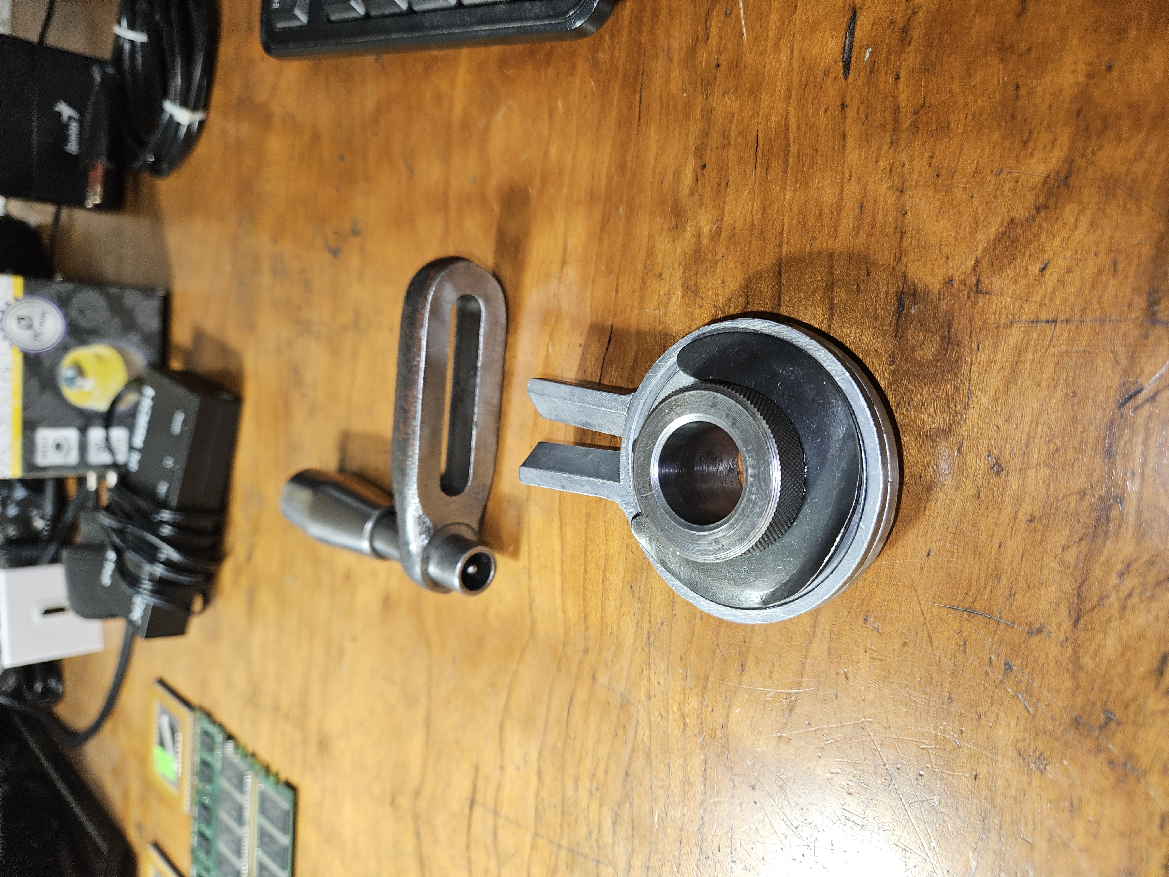 Potrebujem poradiť s deličkou. Na tej mojej je momentálne namontovaný nónius a kľučka s kolíkom. Deliace kotúče mám, ale iba 2. Je treba na použitie deliacich kotúčov inú kľučku, či nejakú redukciu, alebo sa dierovaný kotúč iba prehodí miesto kotúča s nóniom?