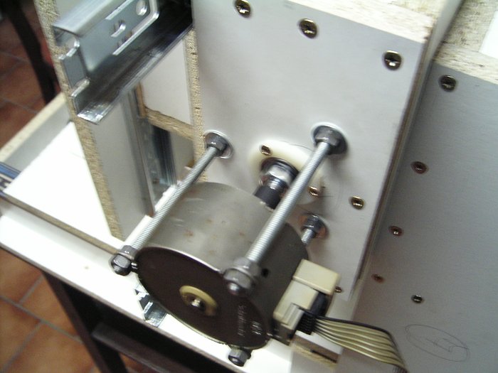 Jojo, přesně, lamino z nějakého starého regálu, kolejničky donesl kámoš truhlář, závitové tyče z práce :wink: a ložiska koupeny. Konstrukce není moje, ale věrně jsem ji "obšlehl" podle jakési maďarské konstrukce z maďarských stránek podle fotek. Pouze se míry musely přizpůsobit kolejničkám, které jsem měl k mání. Později se stroječek osadil 3mi krokáči Mikrokon 4Nm, protože s těmi původními to lezlo pomalu jak šnek. Ty jsem kdysi dostal darem od našeho Admina Robokopa, za což mu patří moje veliké díky. Mimochodem jsou to přesně ty co měl Robokop na jeho BFce viz. http://www.c-n-c.cz/viewtopic.php?t=24