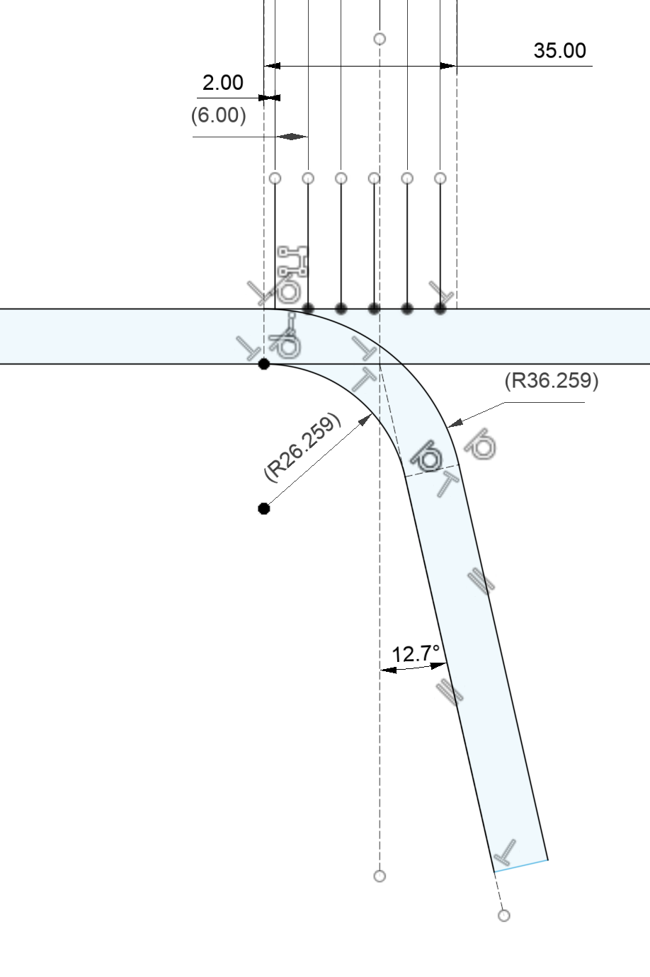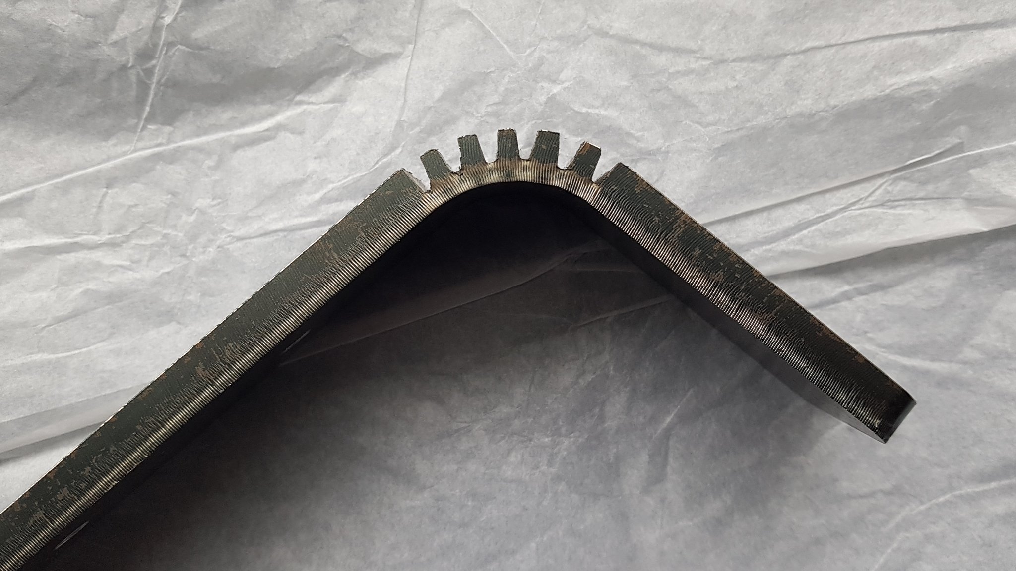potřebuju ohnout pásovinu 50x10mm s určitým rádiusem a tak, aby tam ve finále byl daný úhel, viz skeč. Při mých ohýbacích možnostech jsem to vymyslel takto s tím, že drážky pak vyplním MIGem.