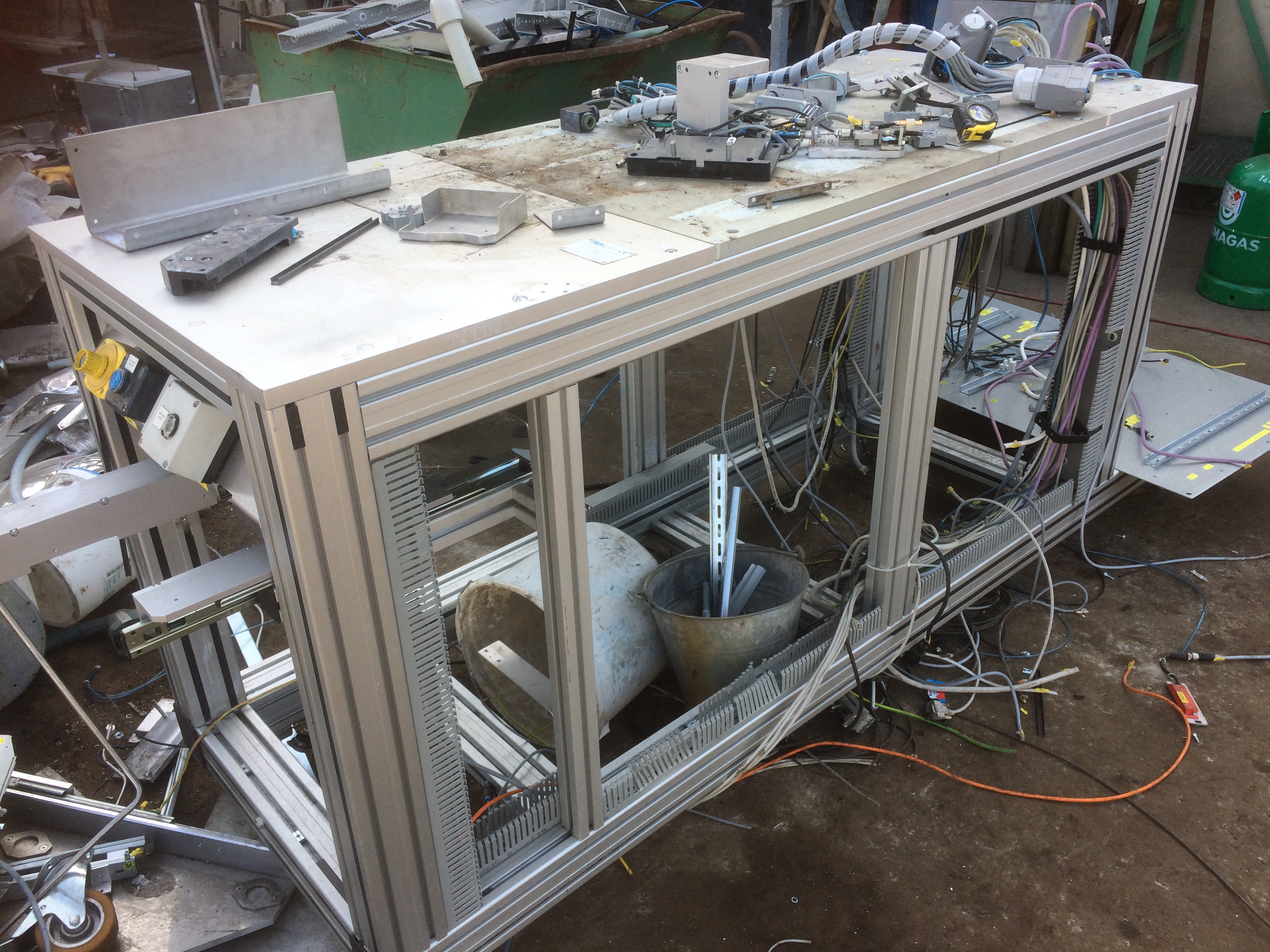 Nejdelší jekl má 2300mm, jinak stůl jako takový měl 1800x880x výška asi 900mm. Několik výztuh, viz ty fotky.