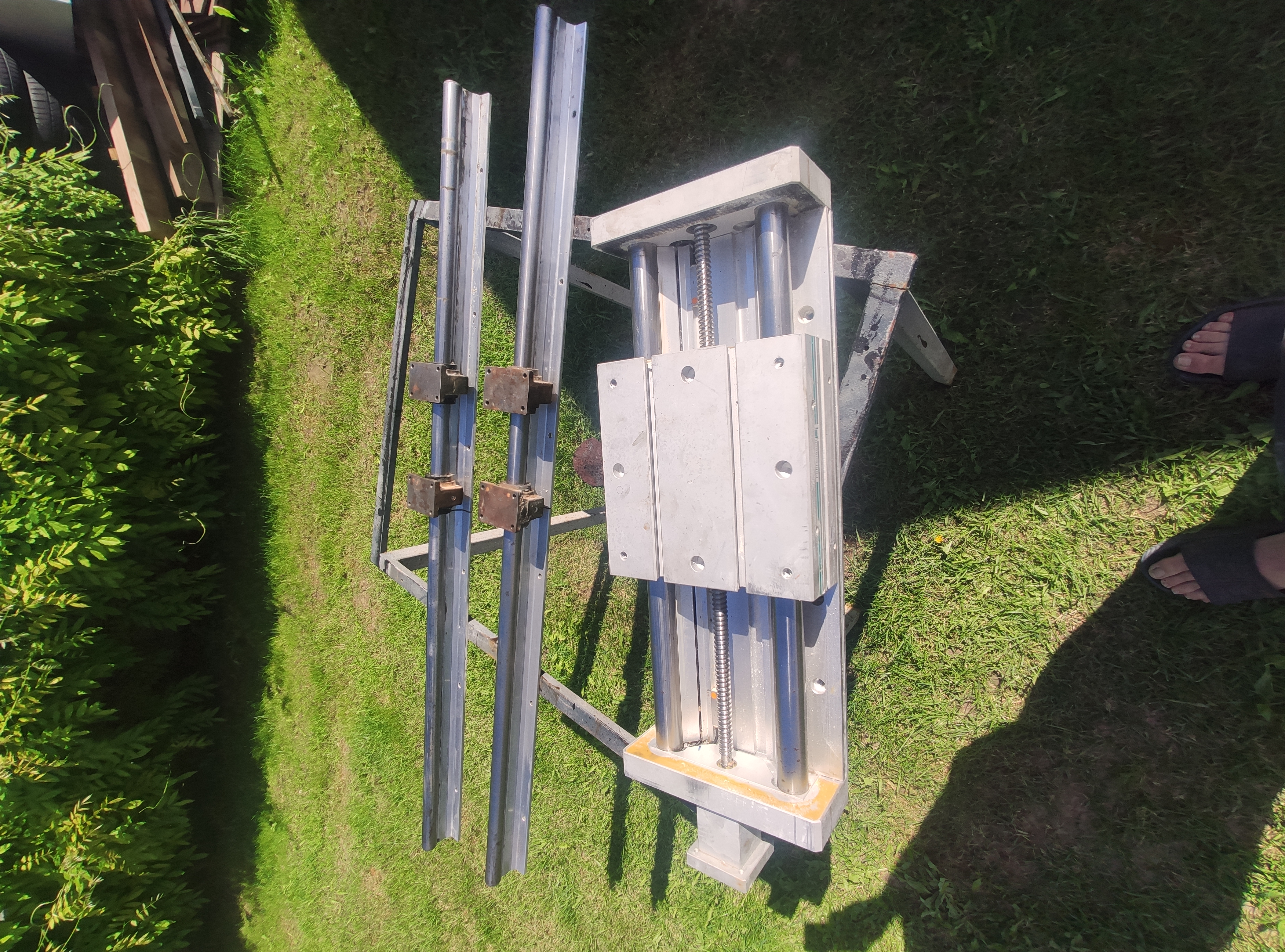 Takže celková dĺžka aj s prírubou 68cm bez 60,5 cm,výška 9cm,šírka 23 cm . Pojazd s prachovkou 23 cm bez 31cm. Vedenie guľičková skrutka 16 mm,podopreté vedenie 30mm. Prípadne predám aj druhú os ktomu za 50 €.Hliníková platna 25x40x1,6 cm ,nové rexroth lineárne vedenia nové + medziplatna 25x23x2,5 cm,chýba už len dorobiť guličkové vedenie.