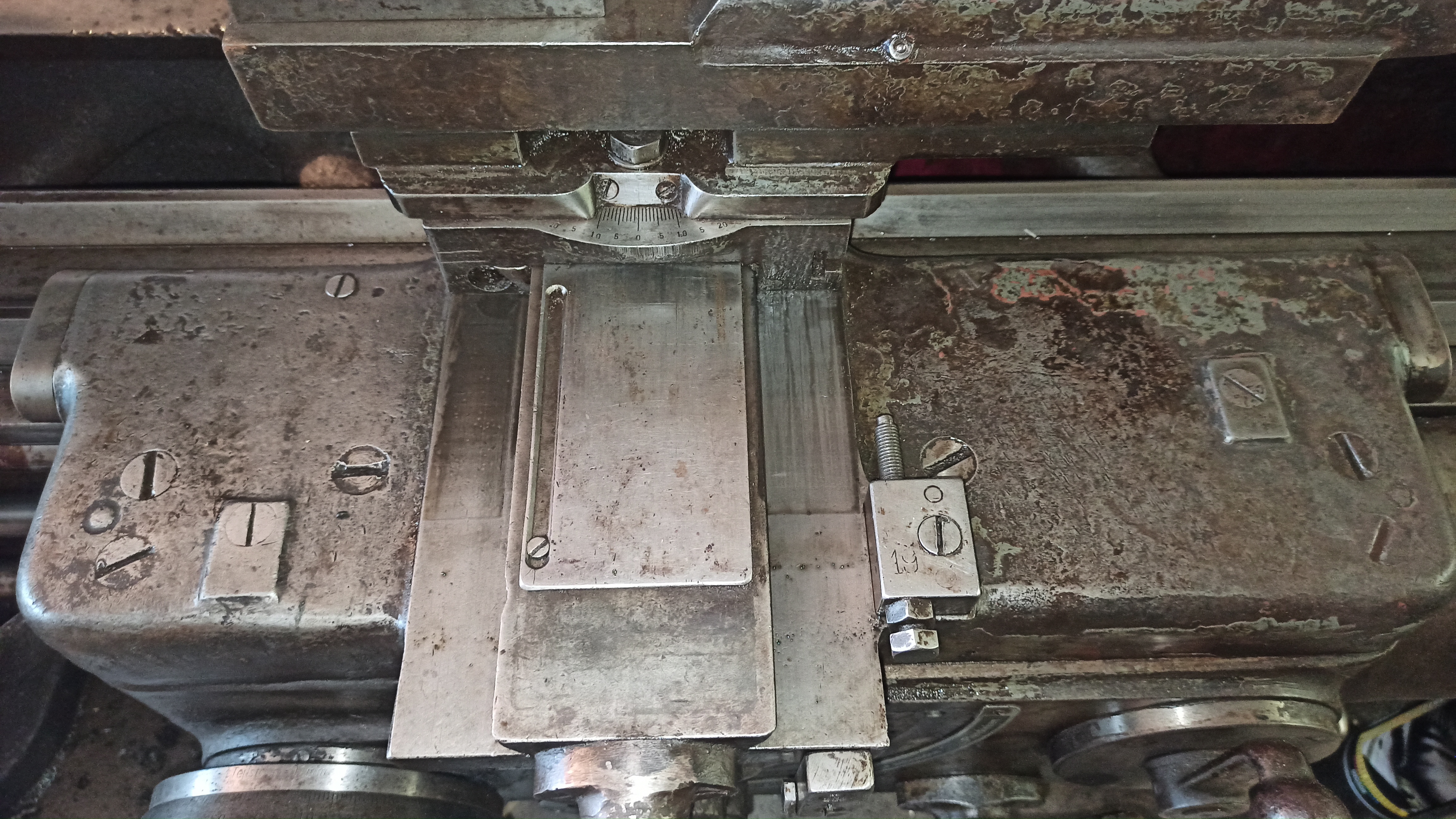 nepoznám síce tento konkrétny stroj, ale na suporte by som skúsil dať dole ten krycí plech nad posuvovou skrutkou ( ten s drážkou,ak povolíš šrób, mal by sa dať odsunúť). Na viacerých starších strojoch sa olej so suportovej skrine nalieval takto zvrchu. Ak zistíš, že tam nieje žiadna komunikácia s olejovou vaňou, daj sem ešte fotku spredu a zboku.
