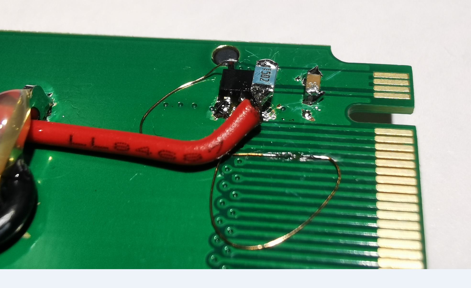 Na tohle pripajis drat uplne v pohode, netreba se toho bat. Ty mensi plosky maji 0.2x0.3mm coz je obdobne jako klasicke QFN pouzdro na kere se paji draty zcela bezne. Prilep to nekam na zada lepidlem a normalne tam pajni treba 0.1mm dratek.