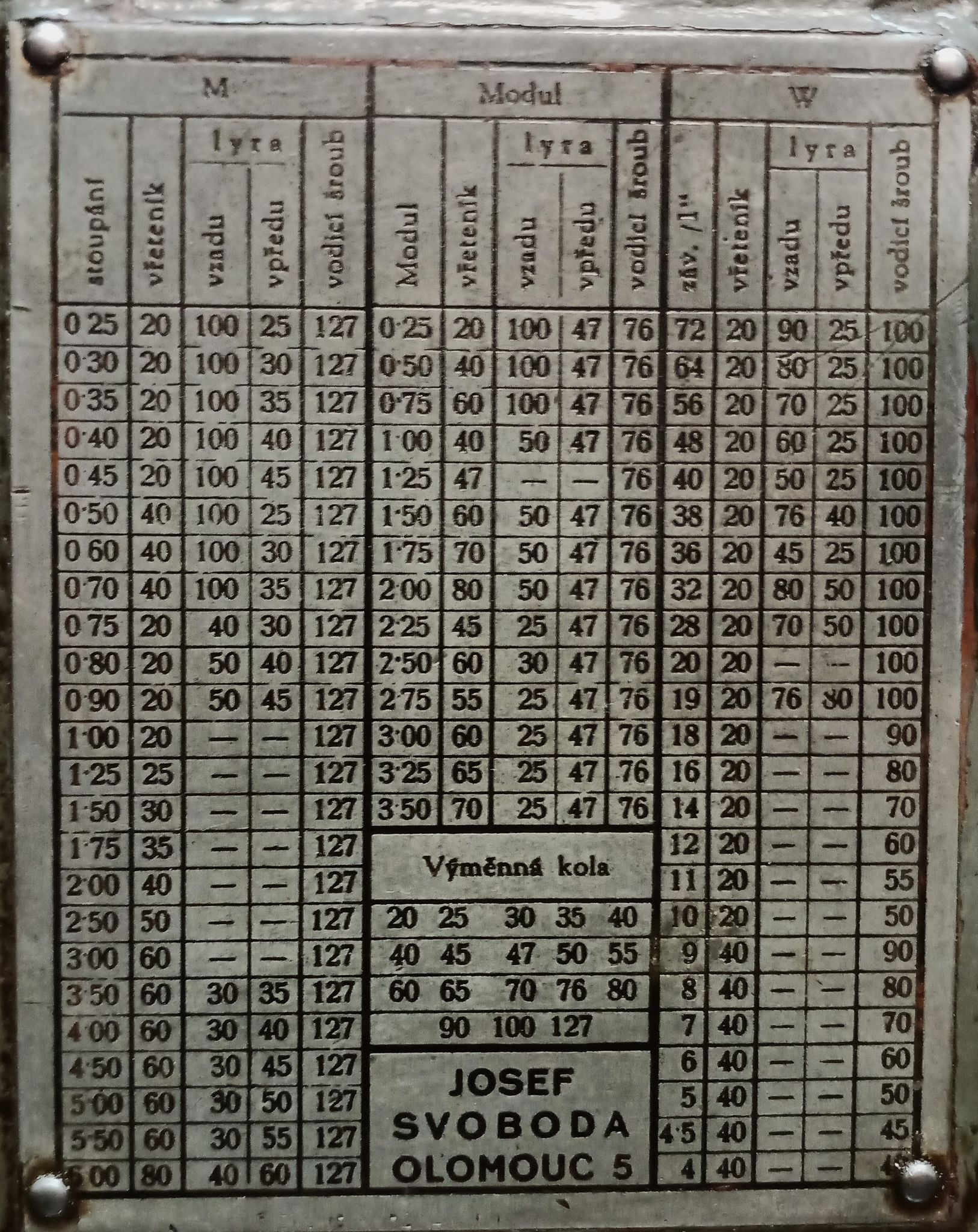 S tímto soustruhem nemám žádnou zkušenost a proto pouze hledám logiku, kterou do této tabulky vnesl její tvůrce.