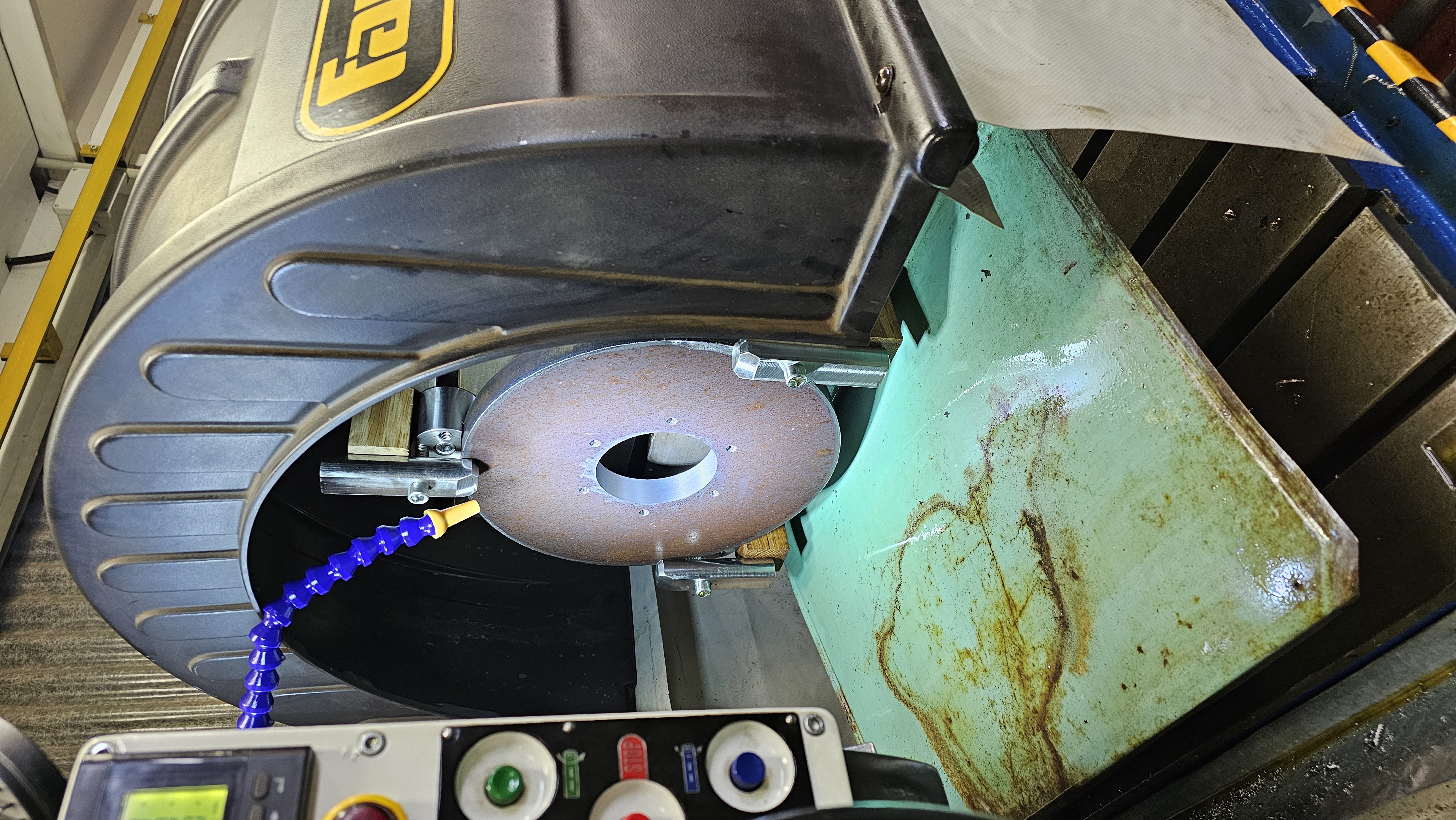 Řešil jsem výrobu odsouvacího krytu nad stůl, abych neměl mokrou zem pokaždé když se tam něco točí rychleji. Náhodou se mi ale teď dostal do ruky kryt z vyvažovačky, a protože se mi to teď hodí, tak jsem to zimprovizoval, jestli by to takhle mohlo fungovat a třeba mě to víc nevadilo, než pomáhalo. Je to komplet odmontovaný, takže i s pružinou co to pomáhá zvedat. Na stole to drží na sloupku, kterej je chycenej do t-drážky na jednom šroubu. Překvapivě to drží dobře. Moc to celý neváží. Dá se to odklopit rychle celý pryč. A pak samozřejmě ten šroub povolit a celý to sundat. Ještě se tomu dobastlily spodky, a zkusím to pár dní testovat, když to bude dobrý, tak to dám do parády, ať to není tak omšelý...