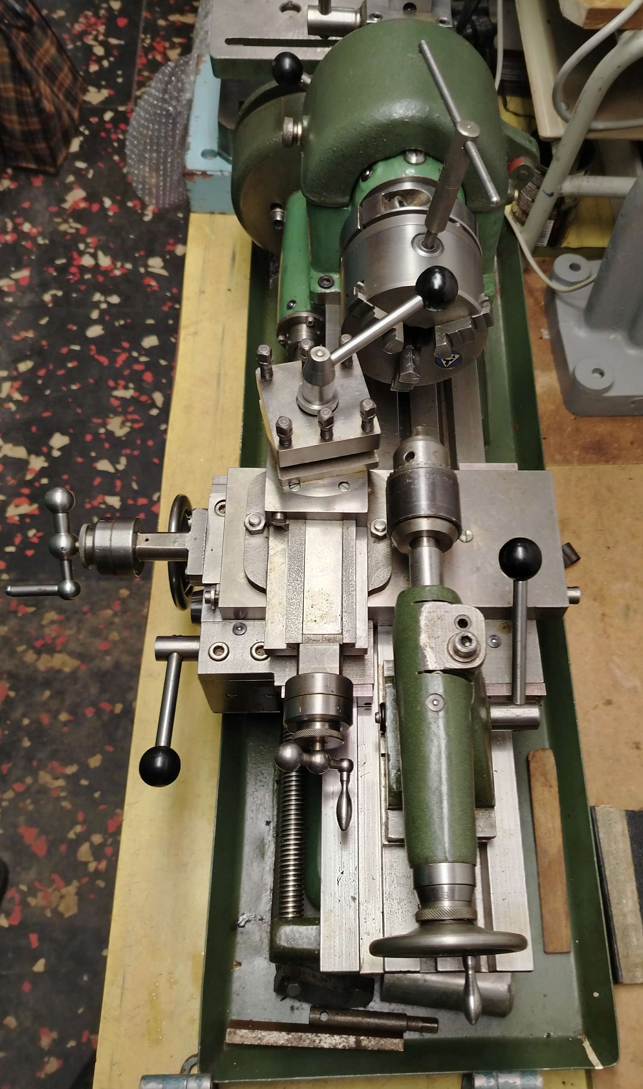 2. Soustruh Mn80 s prislusenstvim. Neni to uplny original, ale puvodni majitel si ho postavil z dilu a nektere veci modifikoval (podle mne moc hezky). Jsou k tomu klestiny, lunety, kola na zavity, licni deska, univerzalky a hodne nozovek. Ma to delany kovovy stul. Aktualne je to na 1f motor, ale 3f motor je k tomu taky. k 3f motoru je menic a ovladani. Stav viz foto. Nová cena 50 tis. Kc 3. tahle vrtacka je tam taky. A je moc hezka. Vyuziti spis na presnejsi vrtani