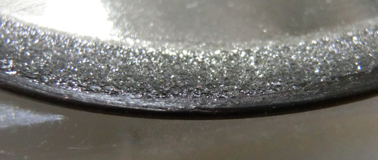 místo bez dia povlaku, a další řez už jsem nedokončil, hrana kotouče je holá.