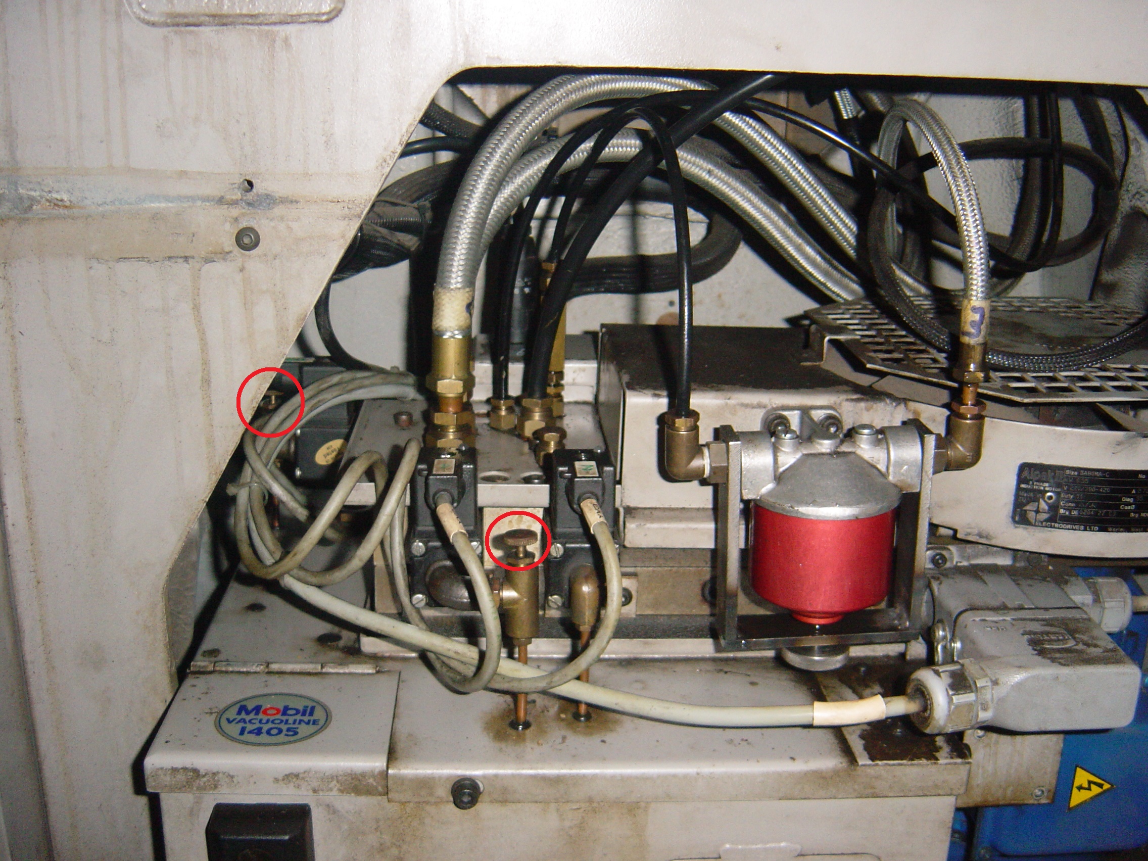 Nemám manuál od brusky, na tom čerpadle jsou dvě kolečka se kterými se dá otáčet, možná je to na seřízení tlaku oleje, v obrázku jsem to vyznačil červeně.