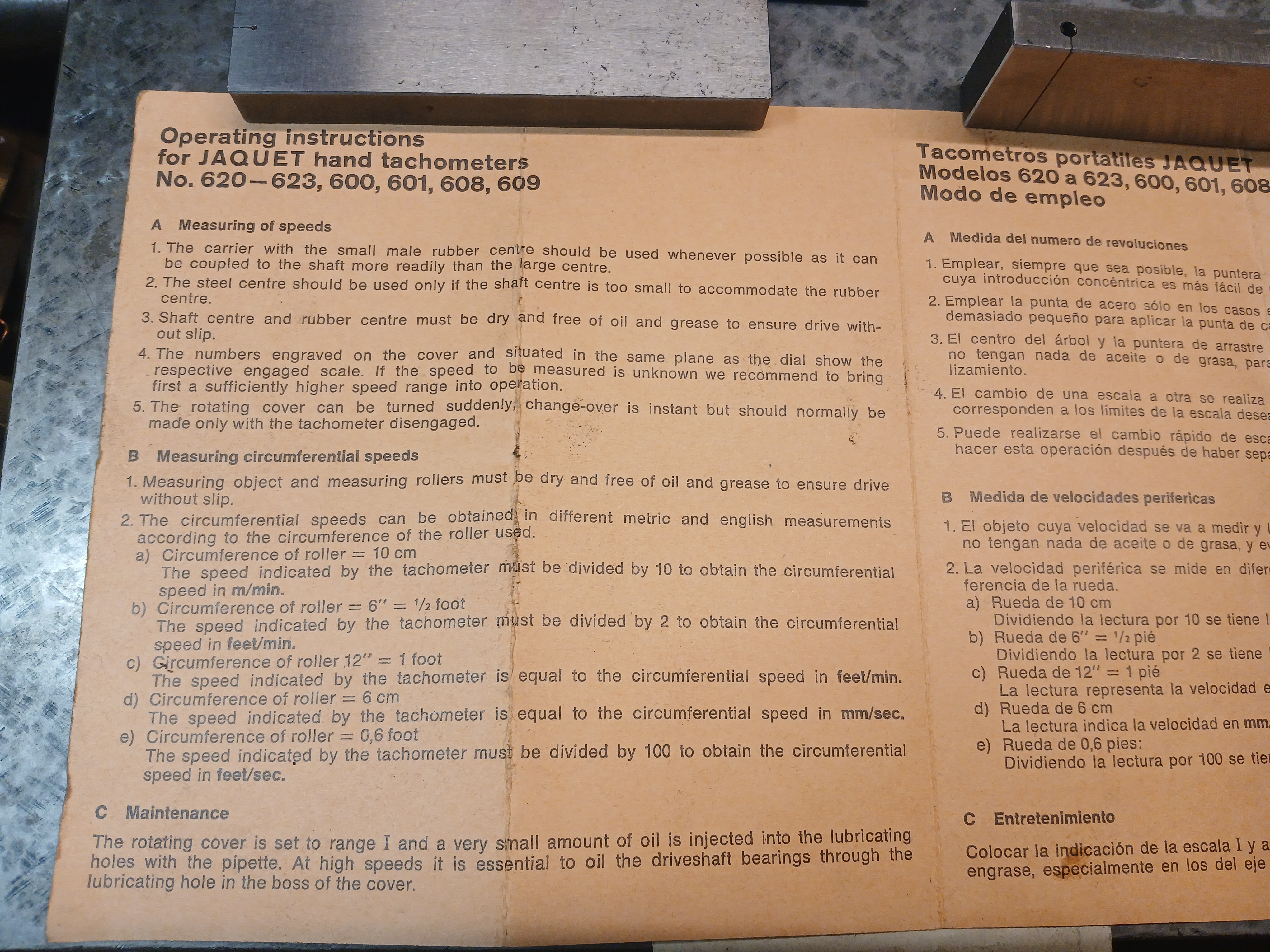 Rychlost indikovaná tachometrem je třeba vydělit 2, abychom získali obvodovou rychlost ve stopách/min.