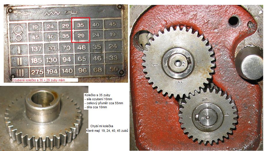 Sháním tedy ozubená kola do posuvu, která mají 14, 24, 40 a 45 zubů.