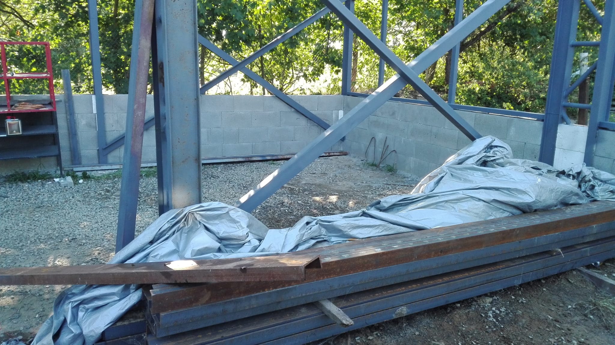 Ale jsou, neboj :-) a budou další. Jsou tam L profily /100x100x10/. Teď jen spodní. O víkendu tam začnu ládovat zbytek. Nad spodní kříže půjdou ještě jedny - dva kříže nad sebou - to by jinak jeřáb rozebral - i když tam bude 7,5 kW měnič s brzdnýma rezistorama. Ve střeše budou táhla se šponovákama /4 ks/. Chtěl jsem to mít trochu gumový, aby se tam dobře dávala střecha a nepřekáželo to. Samo to nespadne a vítr tohle nezbourá. Hodně se to zpevnilo těma účkama mezi vazníkama - někdo je dává nad v délce. Je to jednodušší, ale tohle mnohem pevnější. Tohle fakt neošidíš.