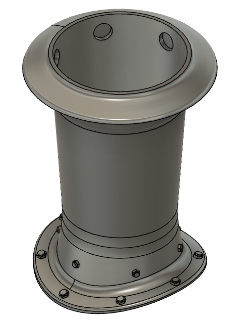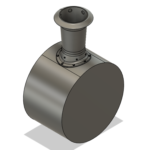 Tento model byl vytvářen pomocí rotace okolo osy středu kotle a přesouváním na patřičné místo a následně zrcadlen podle svislých rovin v ose komína