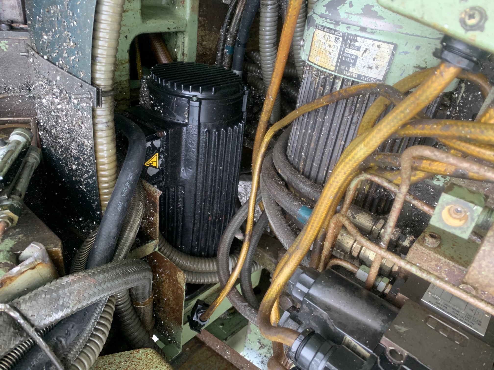 Slaný, soustruh od Volmanů, jenom chybí motor (asi čerstvě odmontovaný), rok výroby 1942. Vypadá zachovale. Lože s můstkem je špinavé, ale nepodřené a nepomlácené. Dnes ho skládali Destou z traktorové vlečky, od toho prohnutá vana, podle štítku pochází z inventáře ČKD.