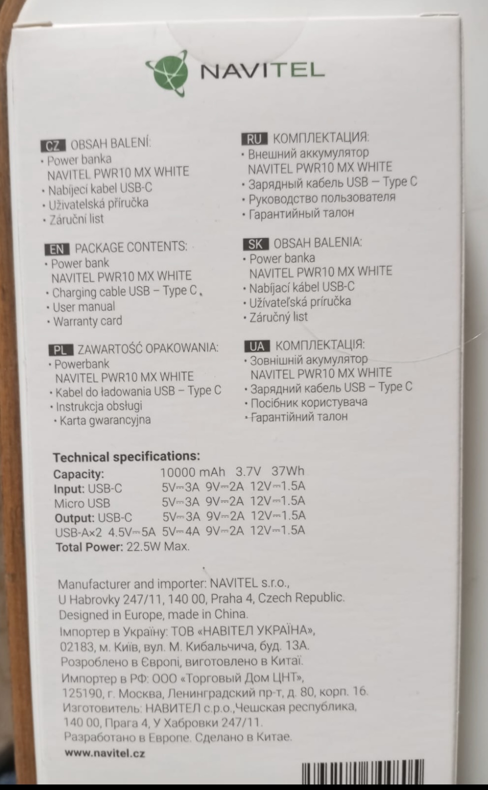 Prodám novou, nerozbalenou powerbanku 10.000 mAh - NAVITEL PWR10 MX WHITE