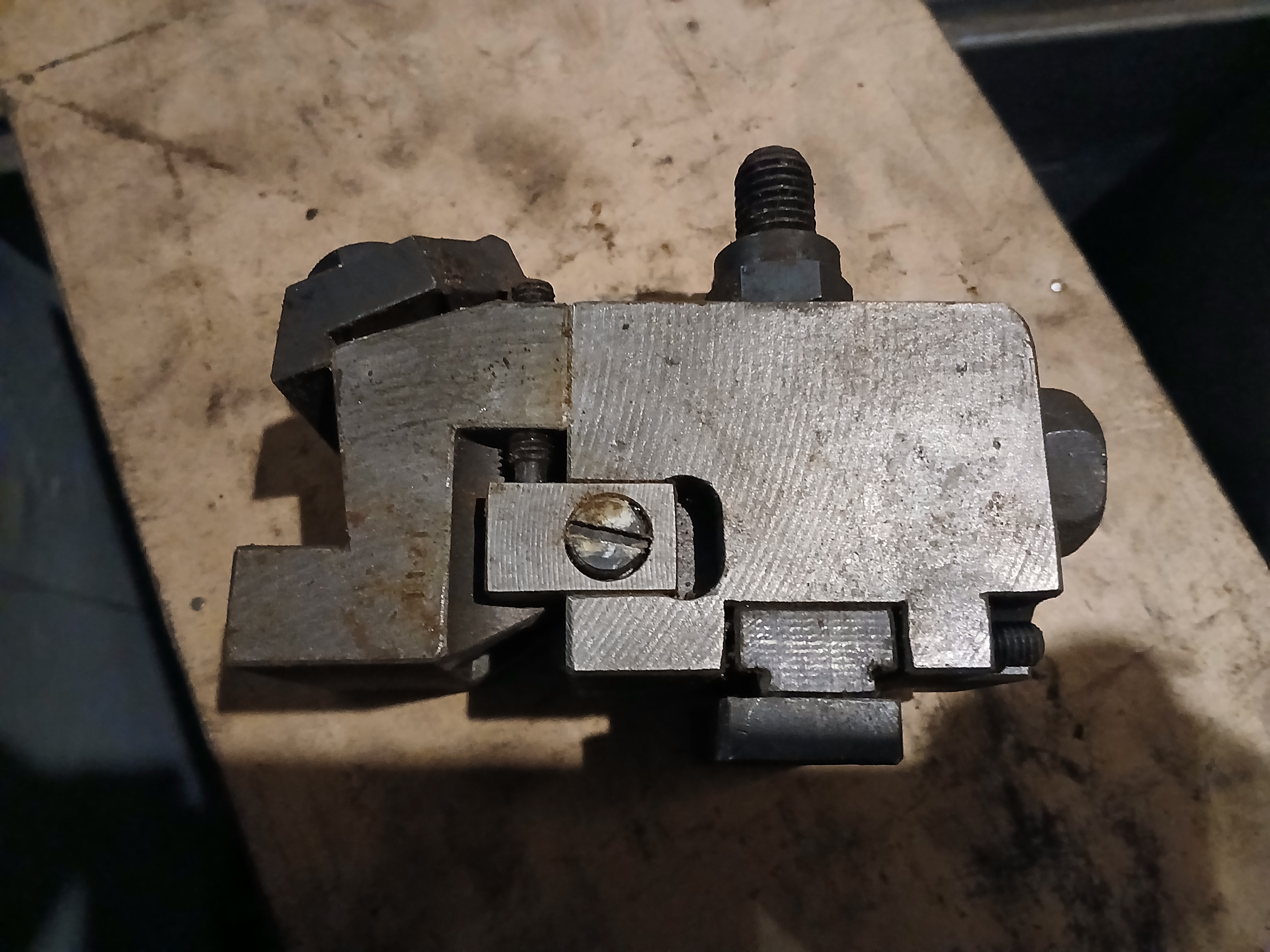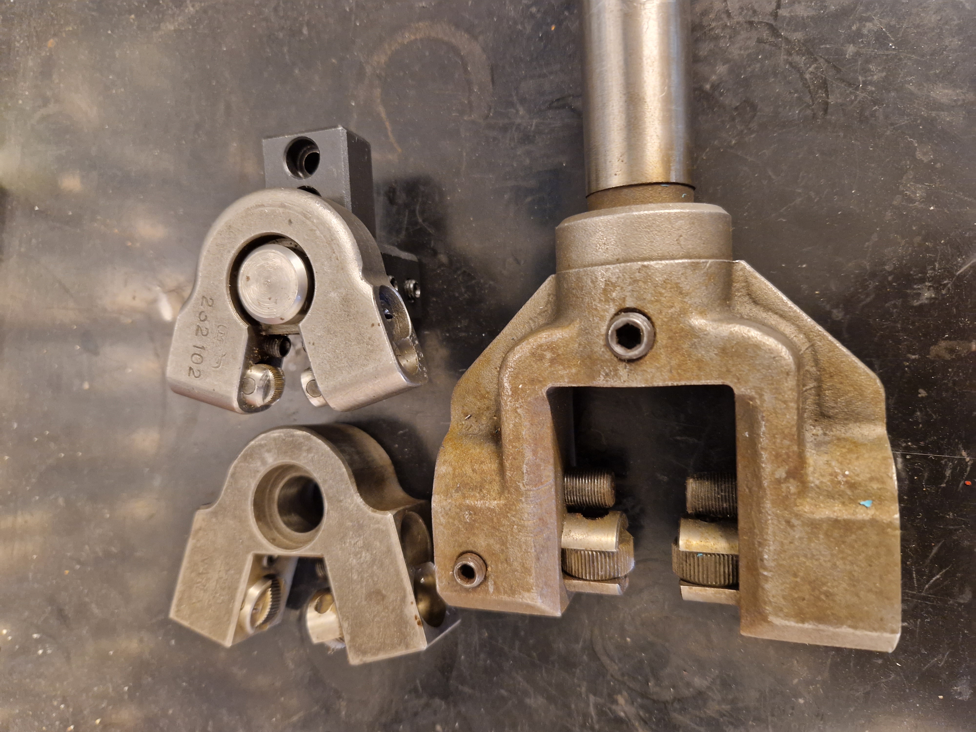 Těch držáků existovalo více velikostí. Výhoda byla, že jsi na tom držáku nastavil pomocí přímých koleček od rovného po šikmé rádlování. Nevýhoda // značná // je, že se tím držákem nedostaneš blízko k osazení // čelistem, kleštině //.