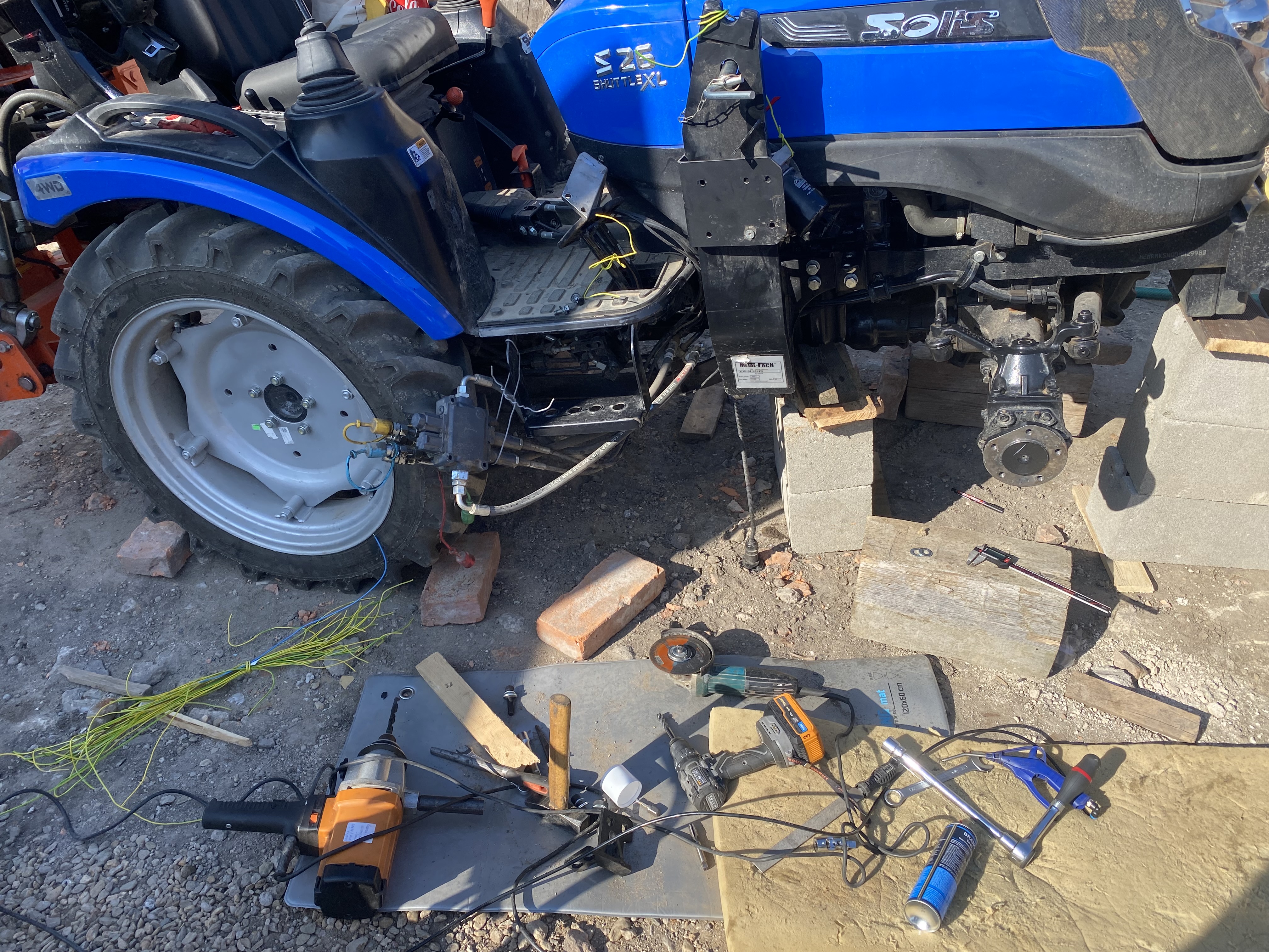 Vytáhl jsem ze skříně mojí DDR žlutou vrtačku na MK3 a přímo na traktůrku jsem tyto díry prevrtal jako nic na otvor 15mm .Je to neskutečna síla . Jeden držel nasazenou metrovou trubku na rukojeť vrtačky a já vrtal