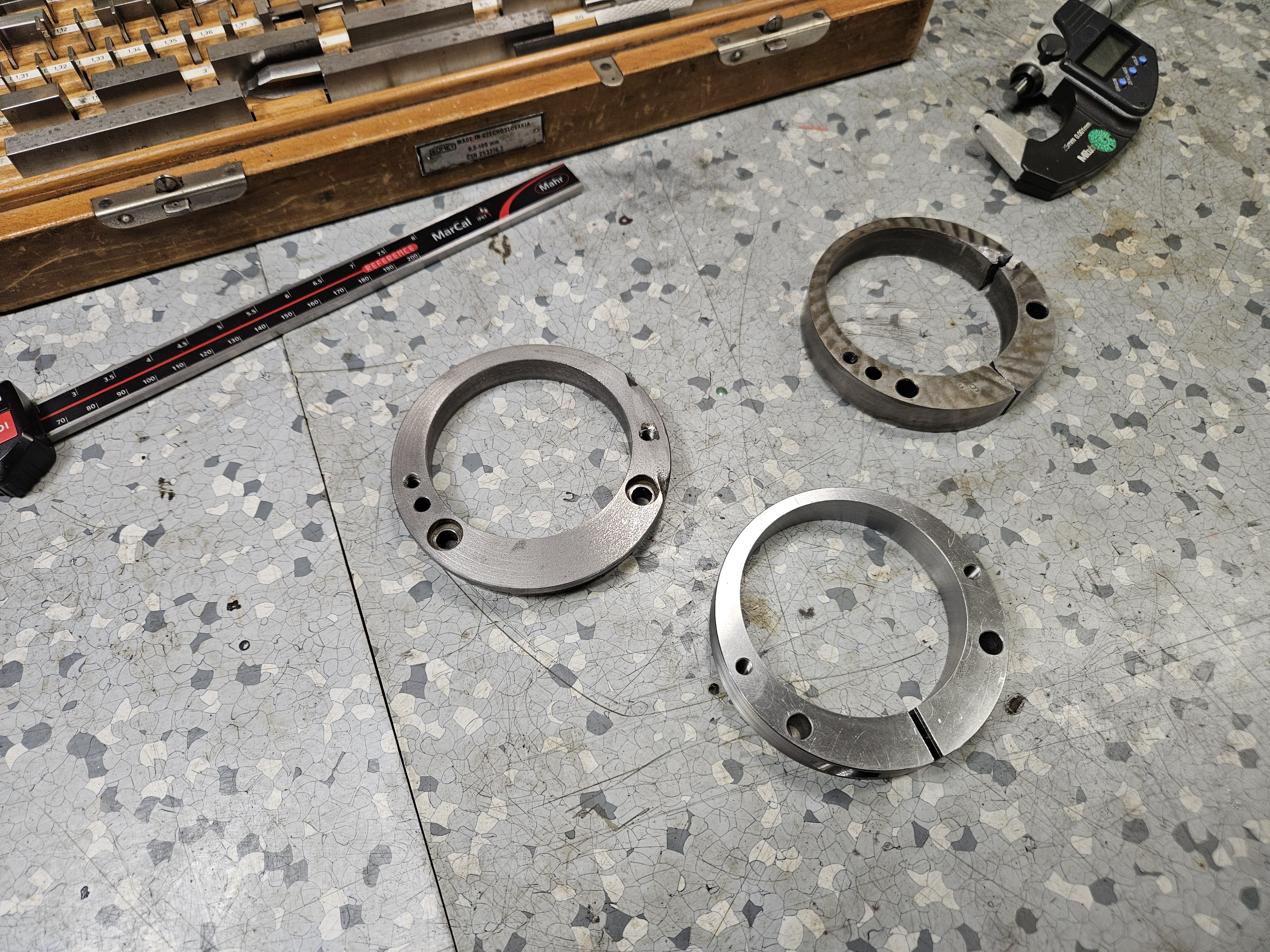 - co když mě napadne blbej nápad si udělat příruby na brusku na 300mm kotouče? vnitřní průměr kotouče 75mm a síla kotouče od 10 do 50mm. Na brusce je kužel na který se příruba cca 130mm velká a 60mm široká s kotoučem narazí a dotahuje šroubem z boku. Tady mám fotky jak to vypadá:
