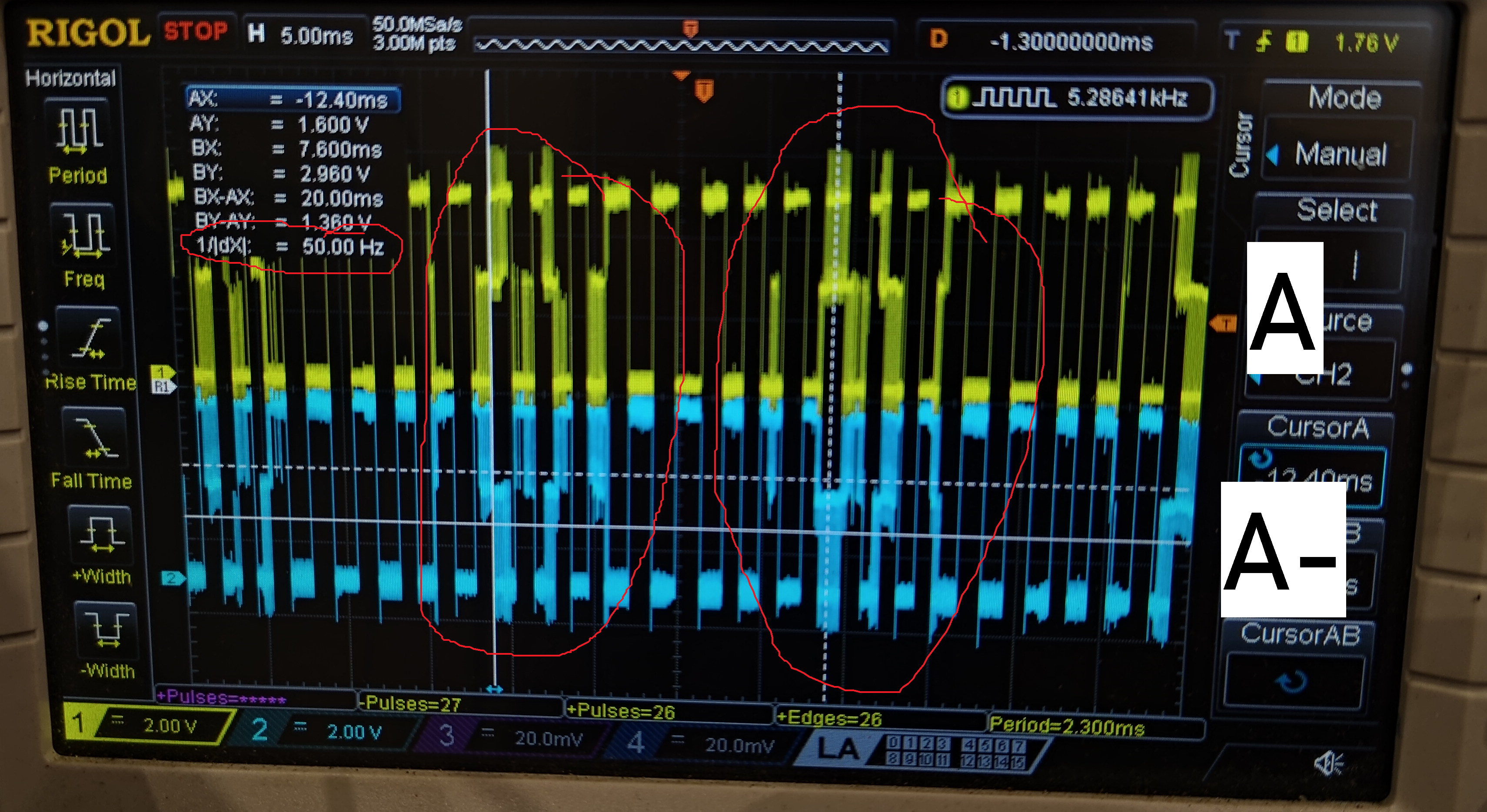 Hodně se to zlepšilo když jsem dal na výstup mezi A a GND, A- a GND, B a GND, B- a GND 100nF kondenzátor, ale při vyšších rychlostech to logicky zakulacuje pulzy.